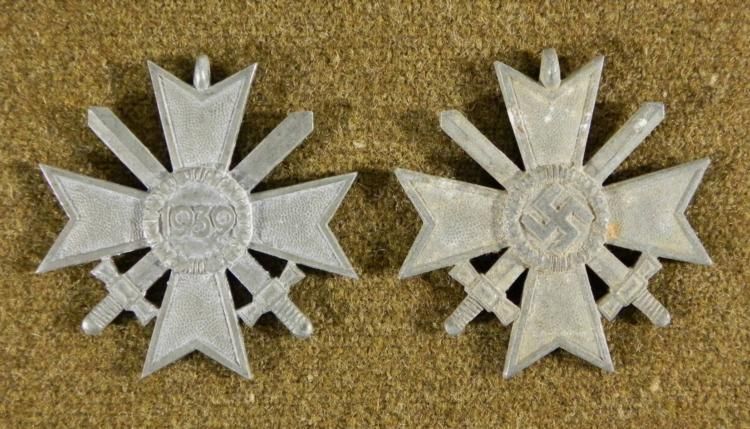 2 ORIGINAL WAR MERIT NAZI CROSSES W/SWORDS--TAKEN FROM FACTORY-NOTCOMPLETEDTWO VERY INTERESTING LATE WAR NAZI ITEMS--VET WENT INTOFACTORY AT WARS END--THESE ARE 2 ORIG AWARDS-NOT FULLY MANUFACTURED