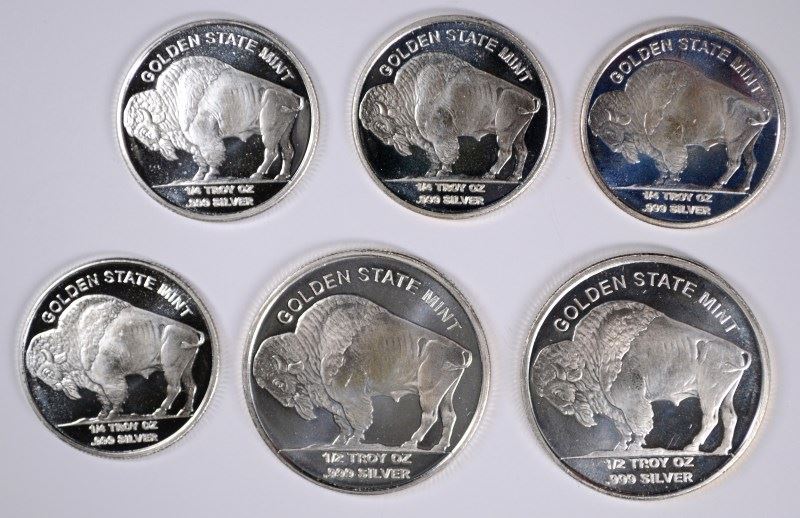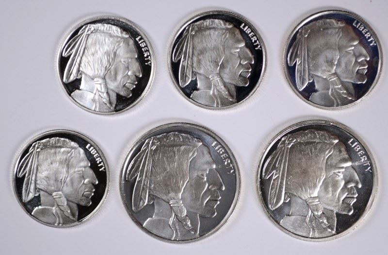 ( 2 ) OUNCES ,999 SILVER: TWO 1/2 OUNCE AND FOUR 1/4 OUNCE BUFFALO/INDIAN ROUNDS