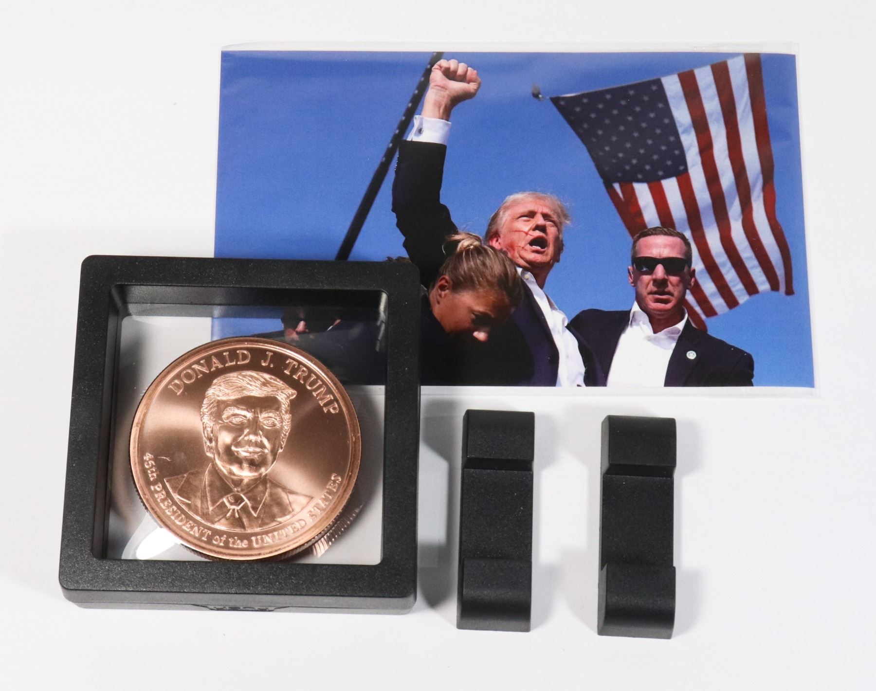 LARGE 47MM/1.85" DIAMETER IN FLOATING DISPLAY CASE WITH STANDS AND CARD