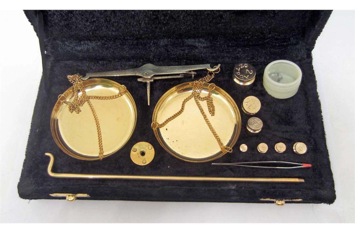 2 OZ GOLD SCALE W/ WEIGHTS IN VELVET CASE