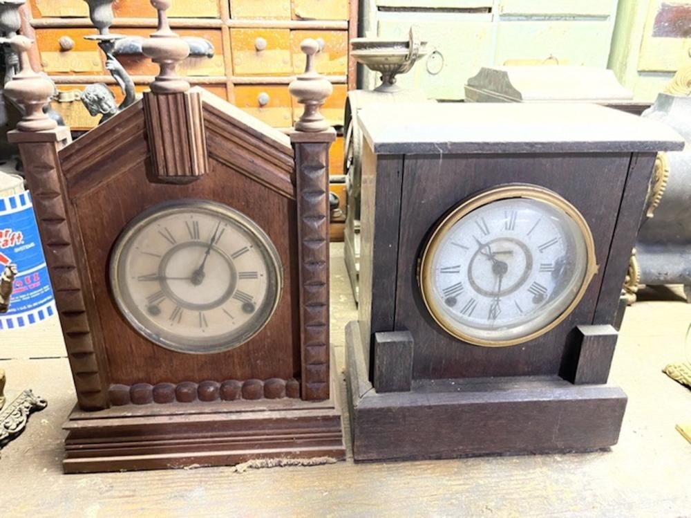 2 oak Ansonia Clock Co. shelf clocks, from the lifetime collection