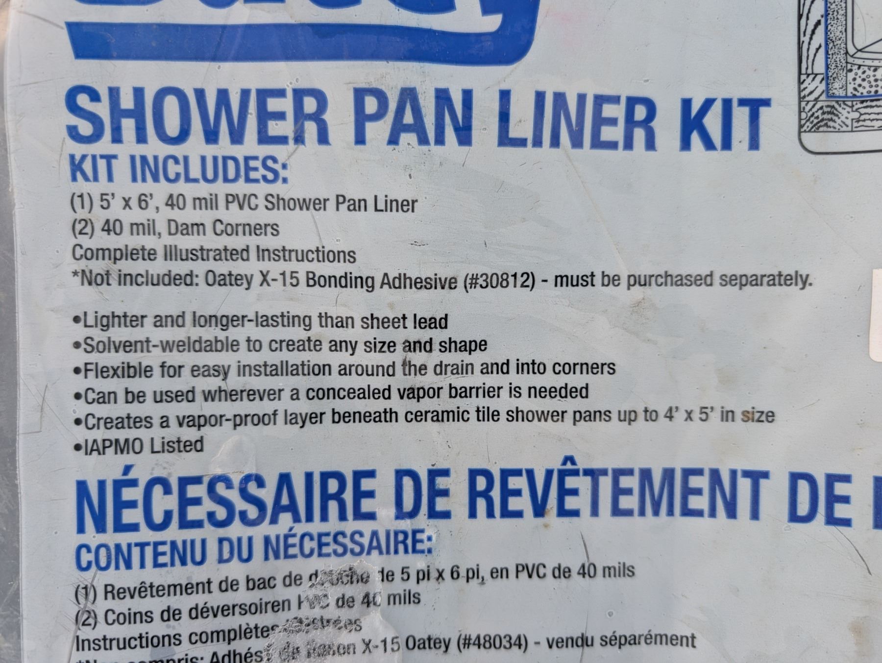 (2) Oatey Shown Pan Liner Kits Sealed