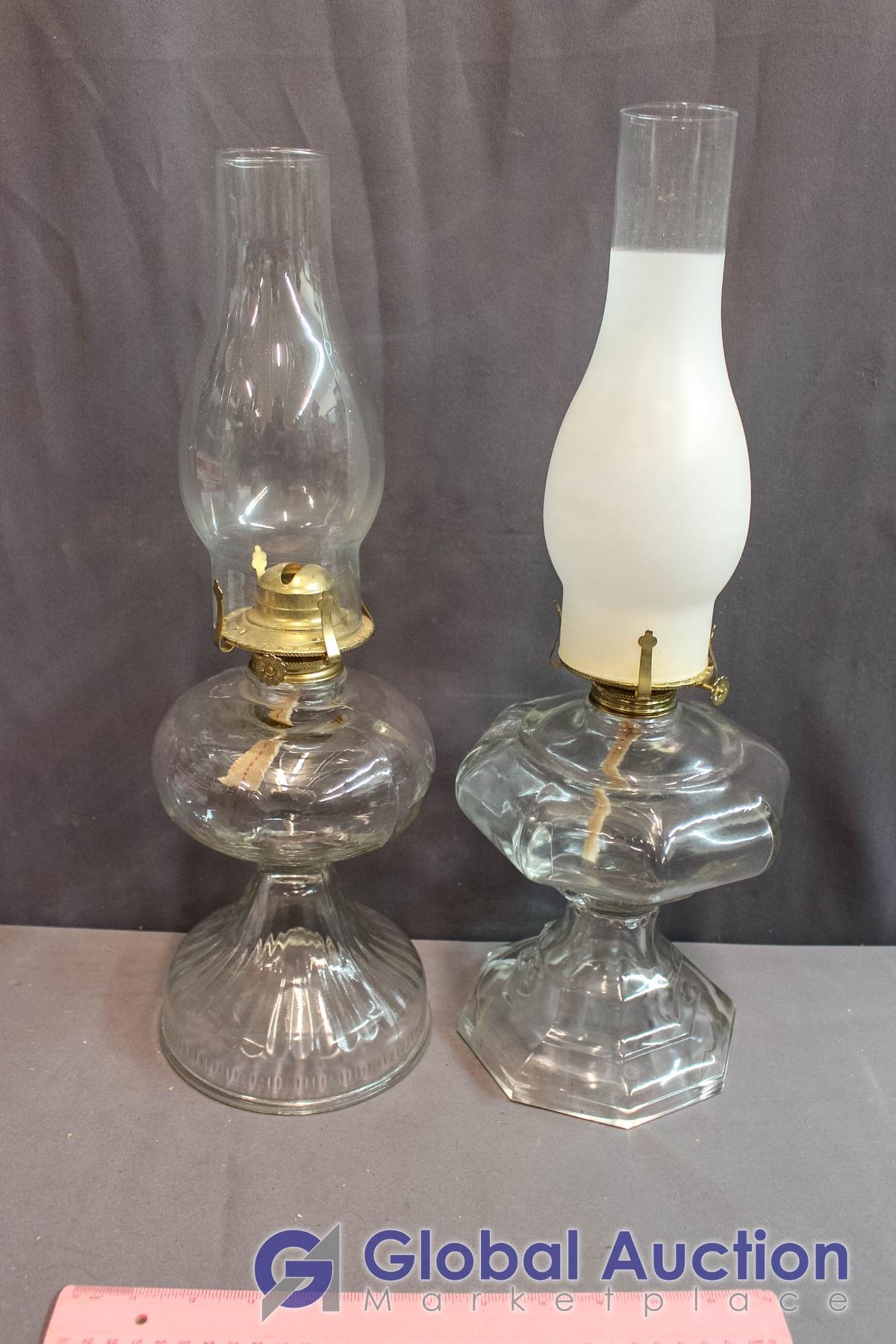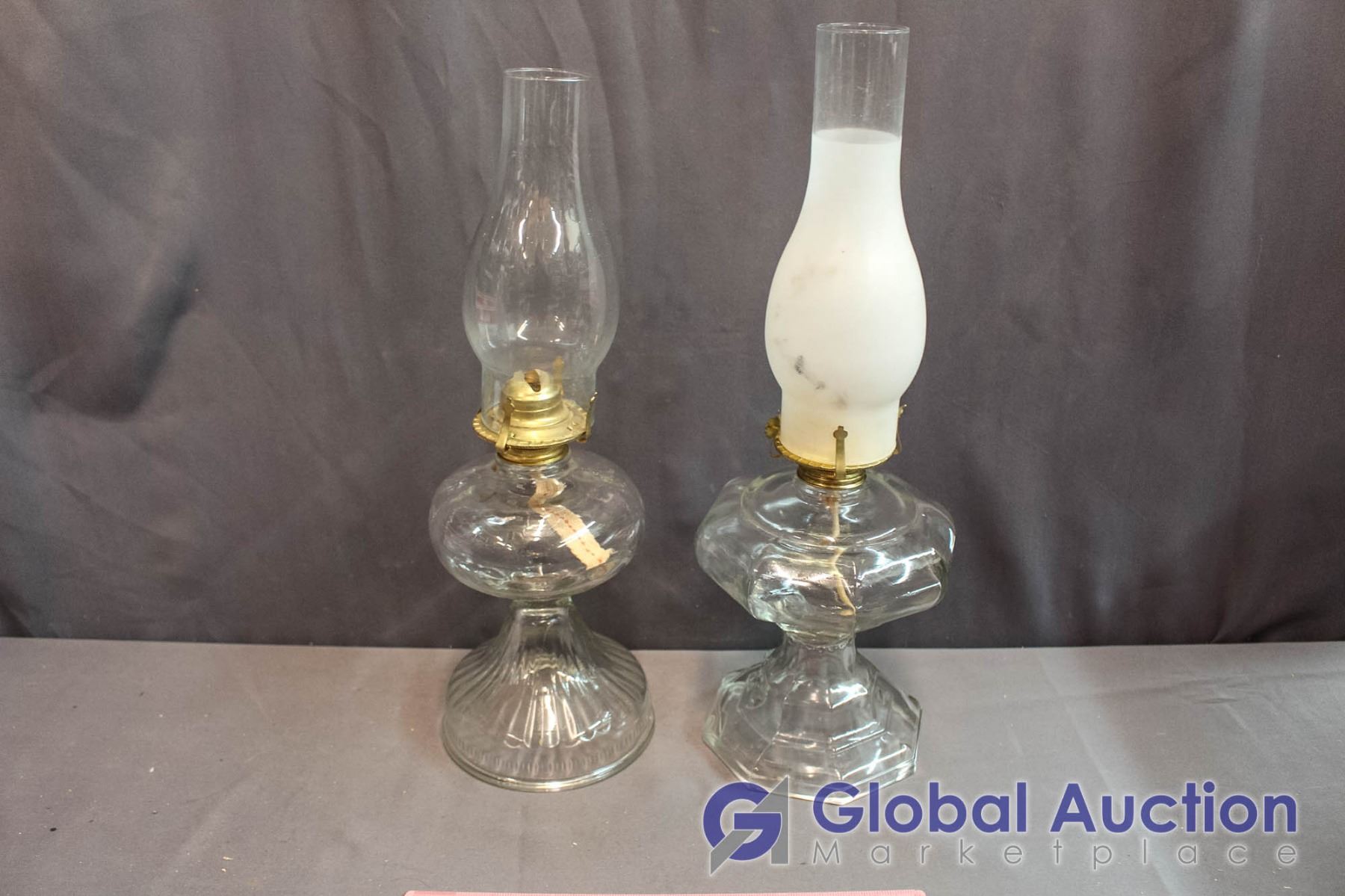 (2) Oil Lamps, 1 with Frosted Shade