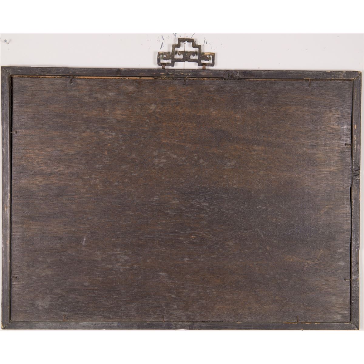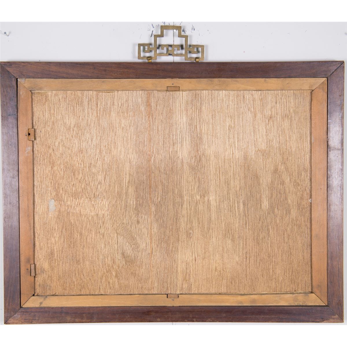 Two oil on board paintings with Chinese wooden frames and metal picture hangers; 52 cm x 41 cm, 52 cm x 38 cm