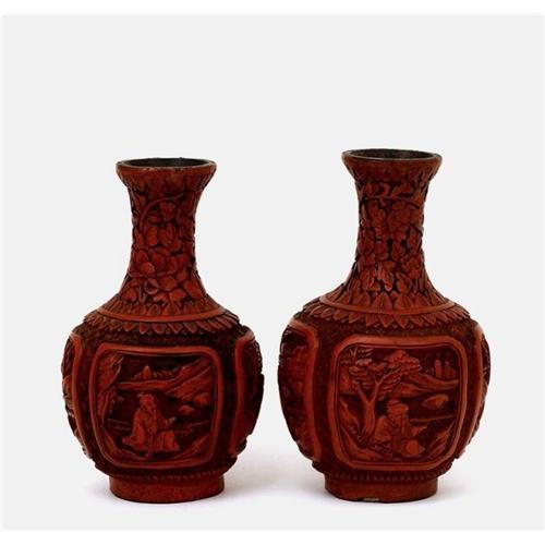 Pair of Old (1920) Chinese Cinnabar Lacquer Vase