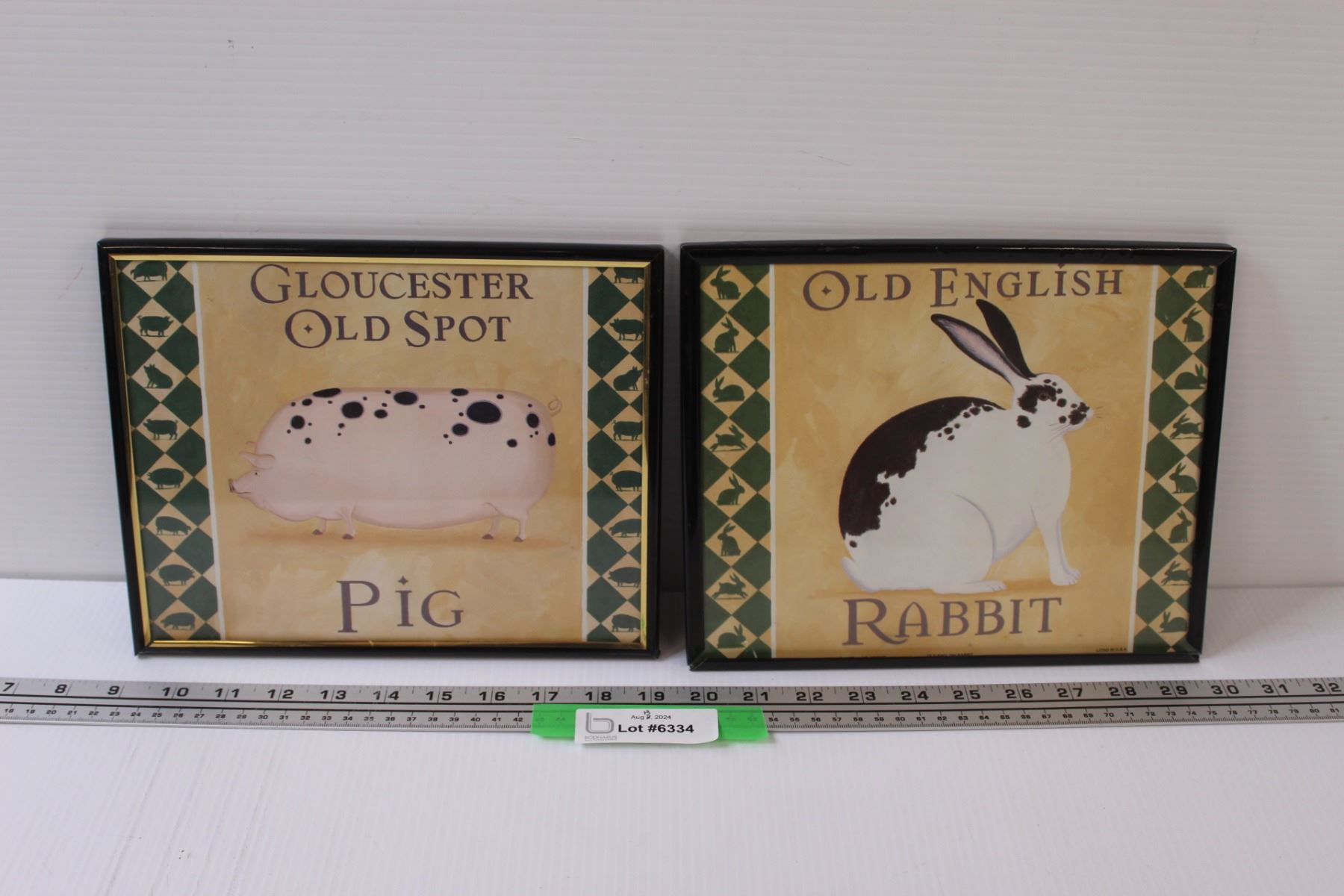 (2) Old English Prints (Pig & Rabbit) - 10" x 8" (One Frame Has Some Damage as Pictured)