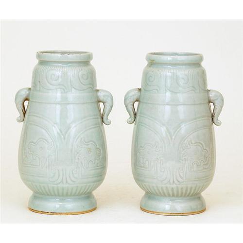 <p>Pair of Old (1950's) Japanese Celadon Imari Studio Vases by Eiraku </p><p>