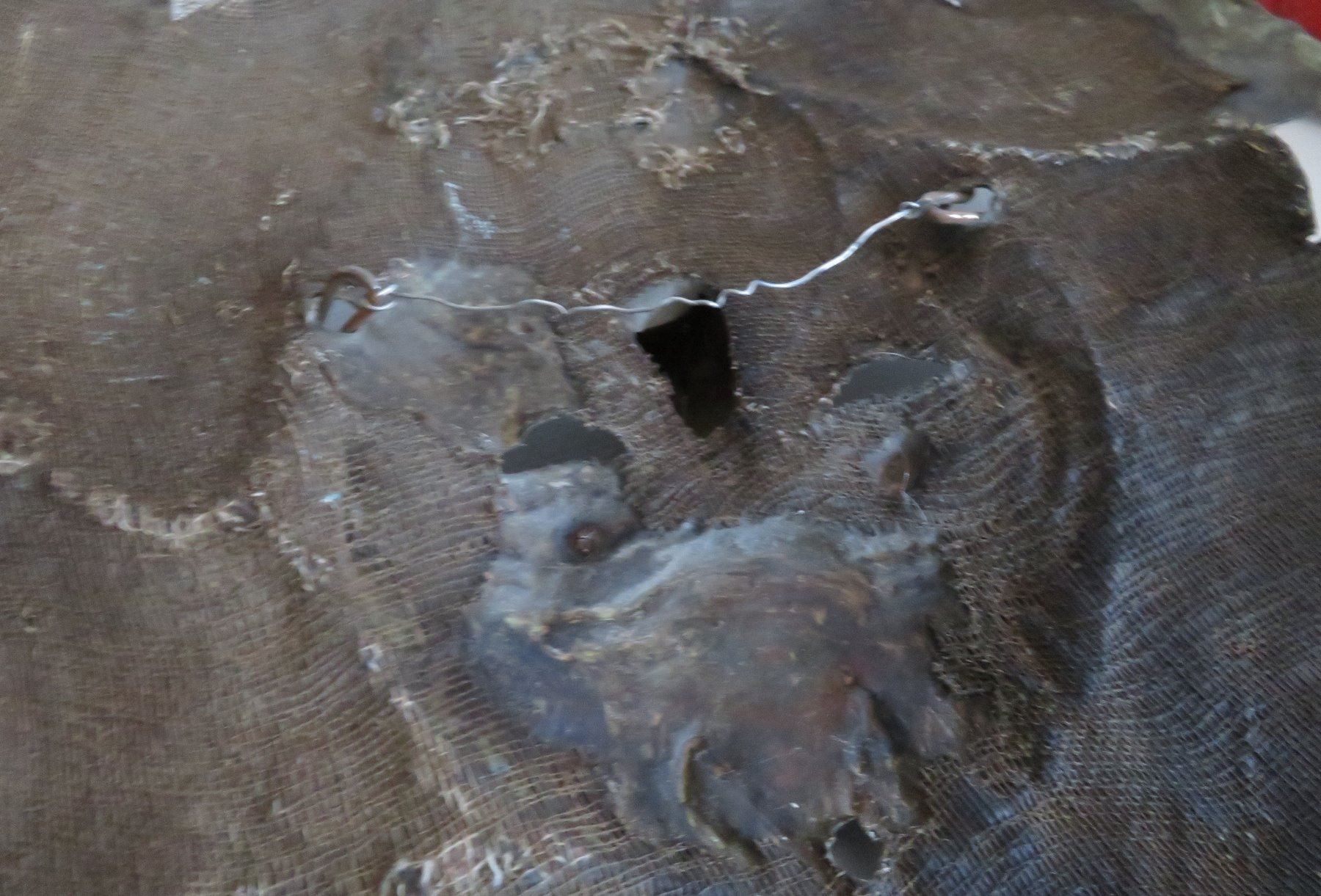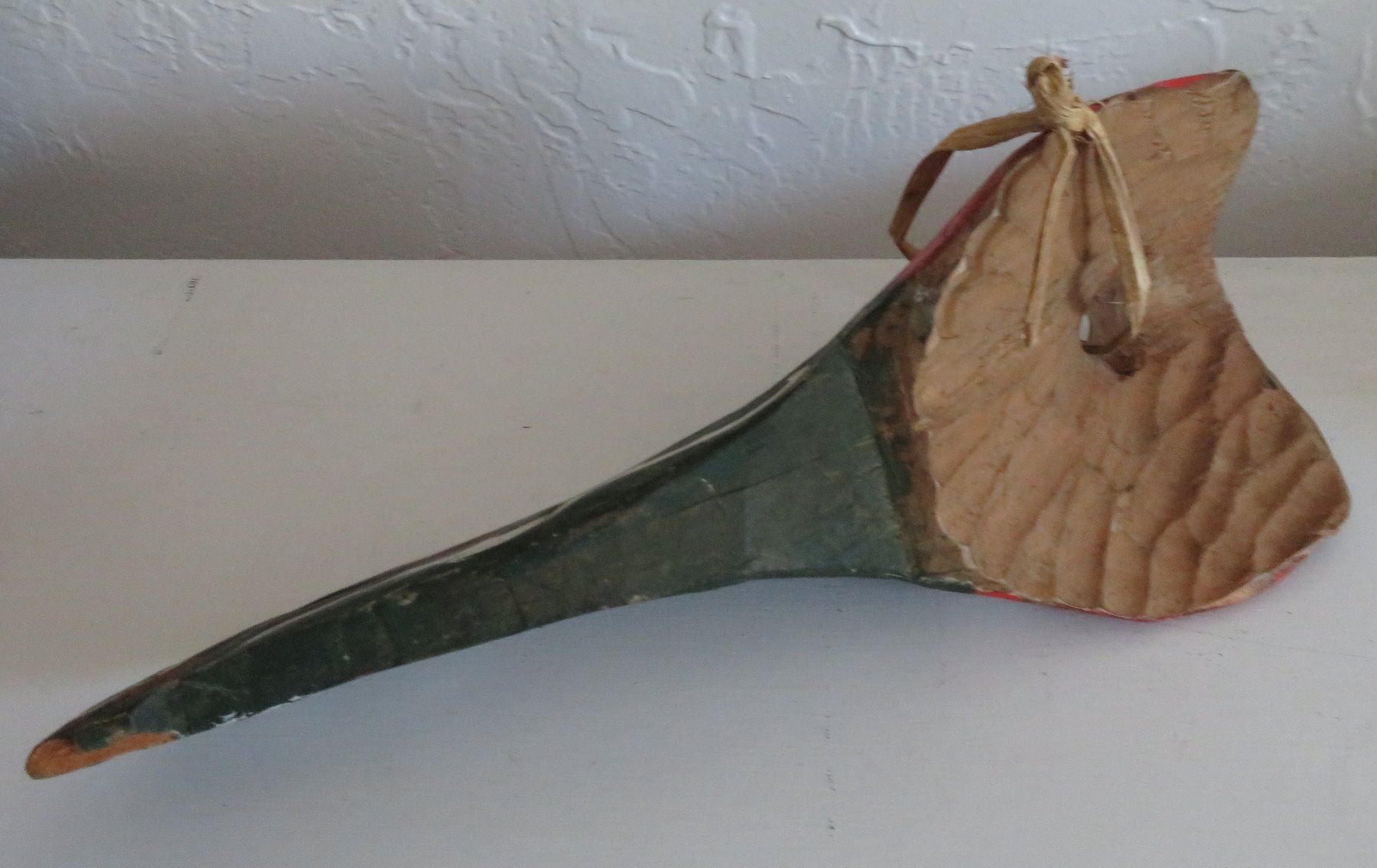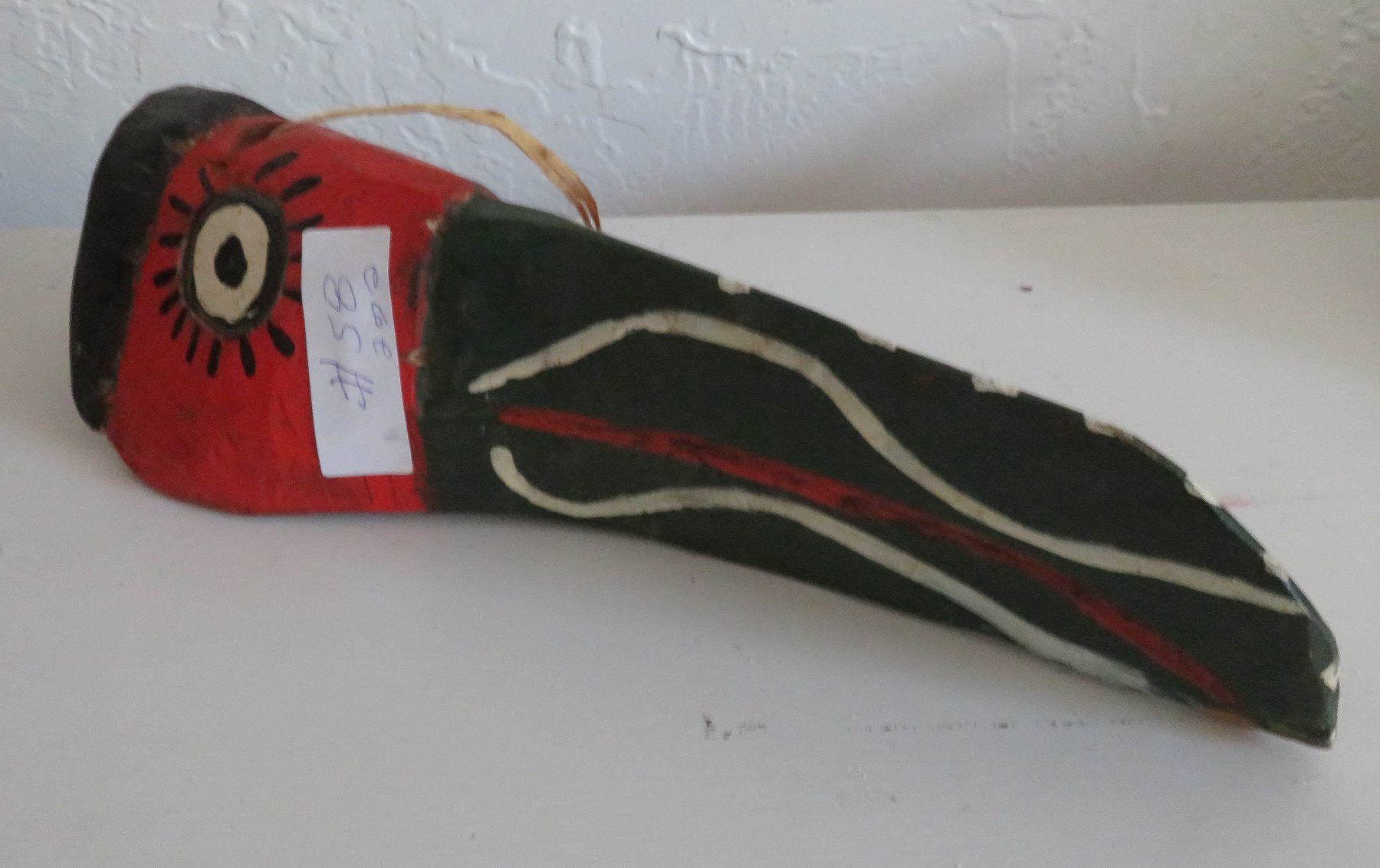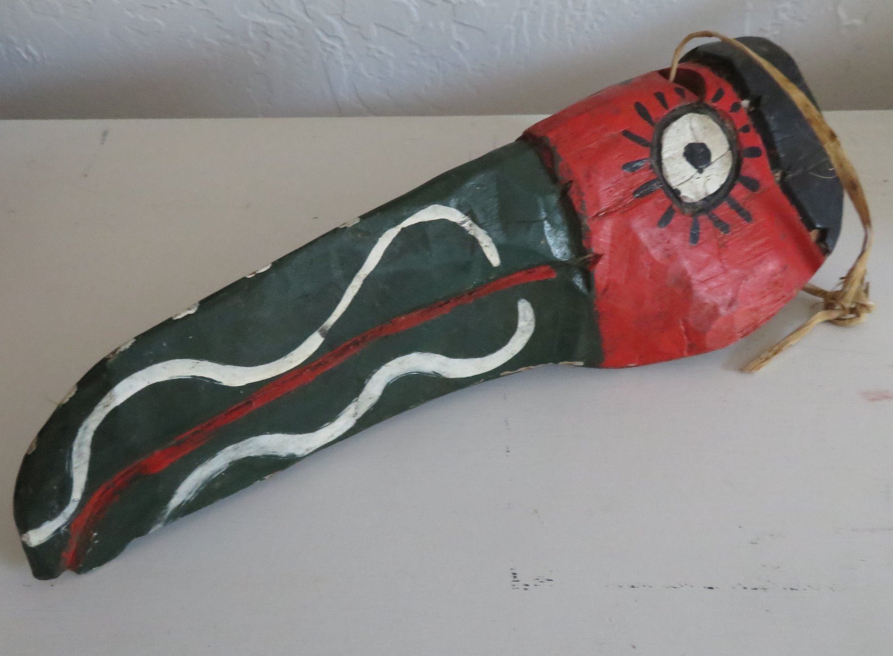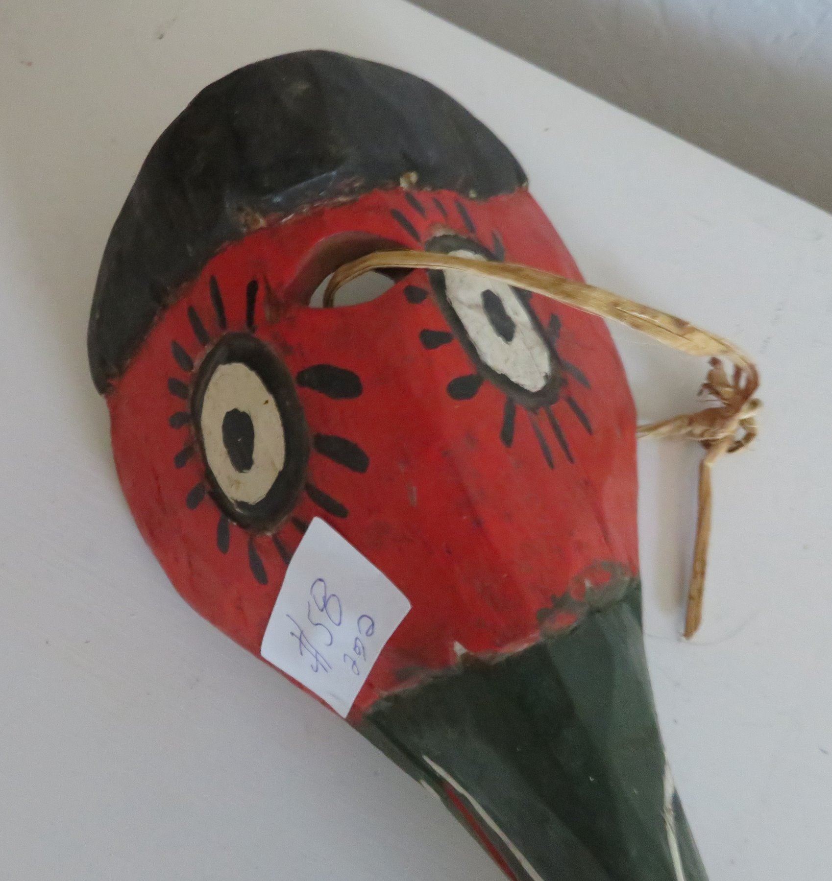 2 Old Mexican Masks, c. 1930s. Made of copper and wood, the large copper mask measures 15" x 12" and the wood mask is 14" x 6". Southern Mexico. Condition: As found, see images. Shipping: $40.00 w/insurance and signature, due to size.