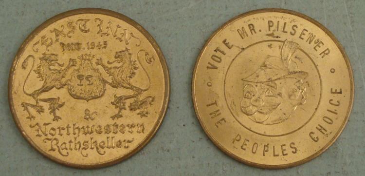 East Inn & Northwestern RathskellerVote for Mr. PilsenerDiameter: 37mm