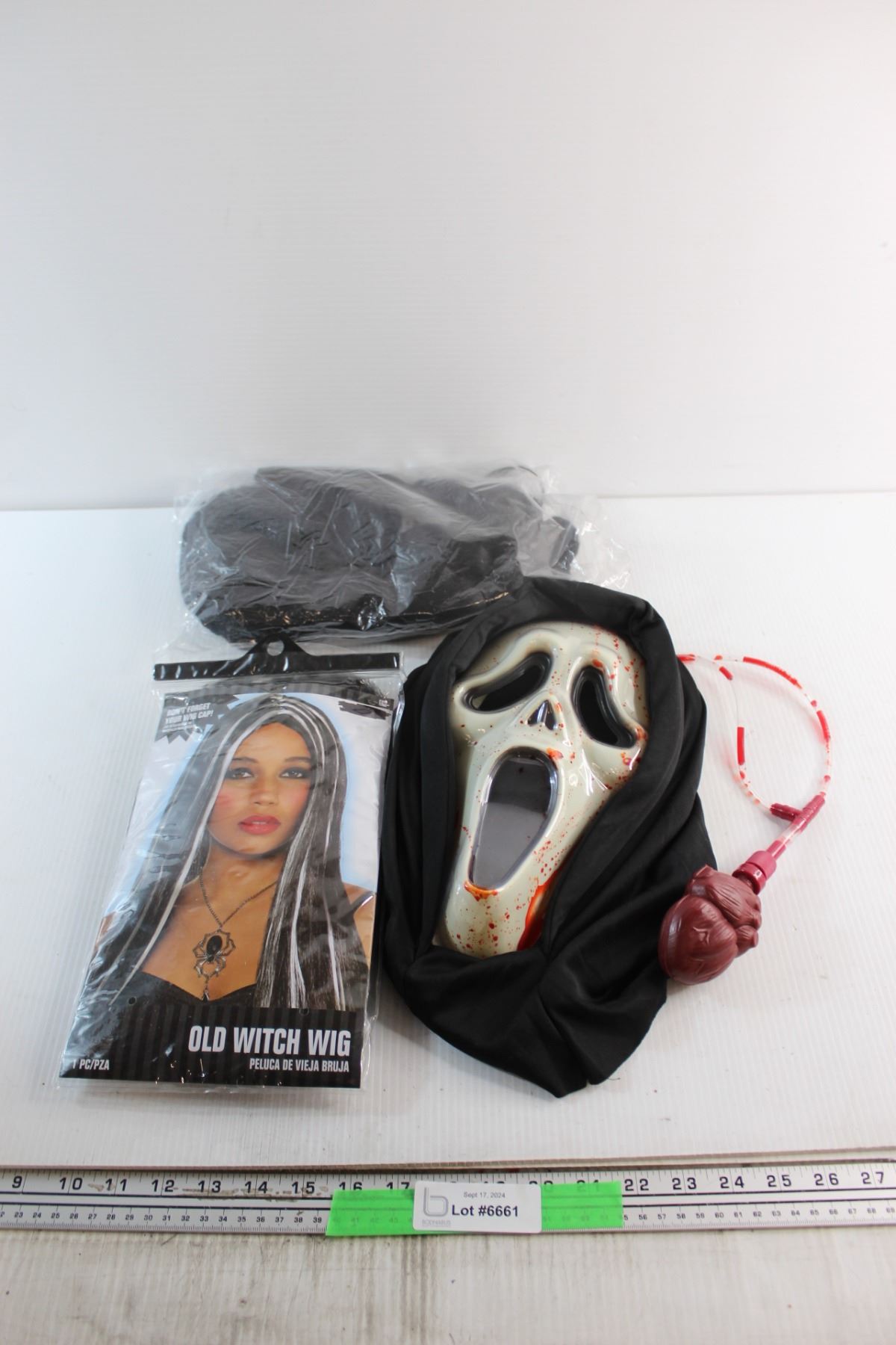 (2) Old Witch Wigs and Scream Face Mask with Pump