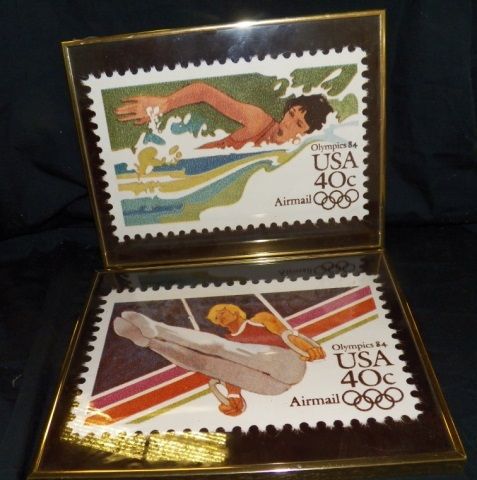 Metal Framed 1984 USA 40 Cent Air Mail Olympic Stamp Pictures