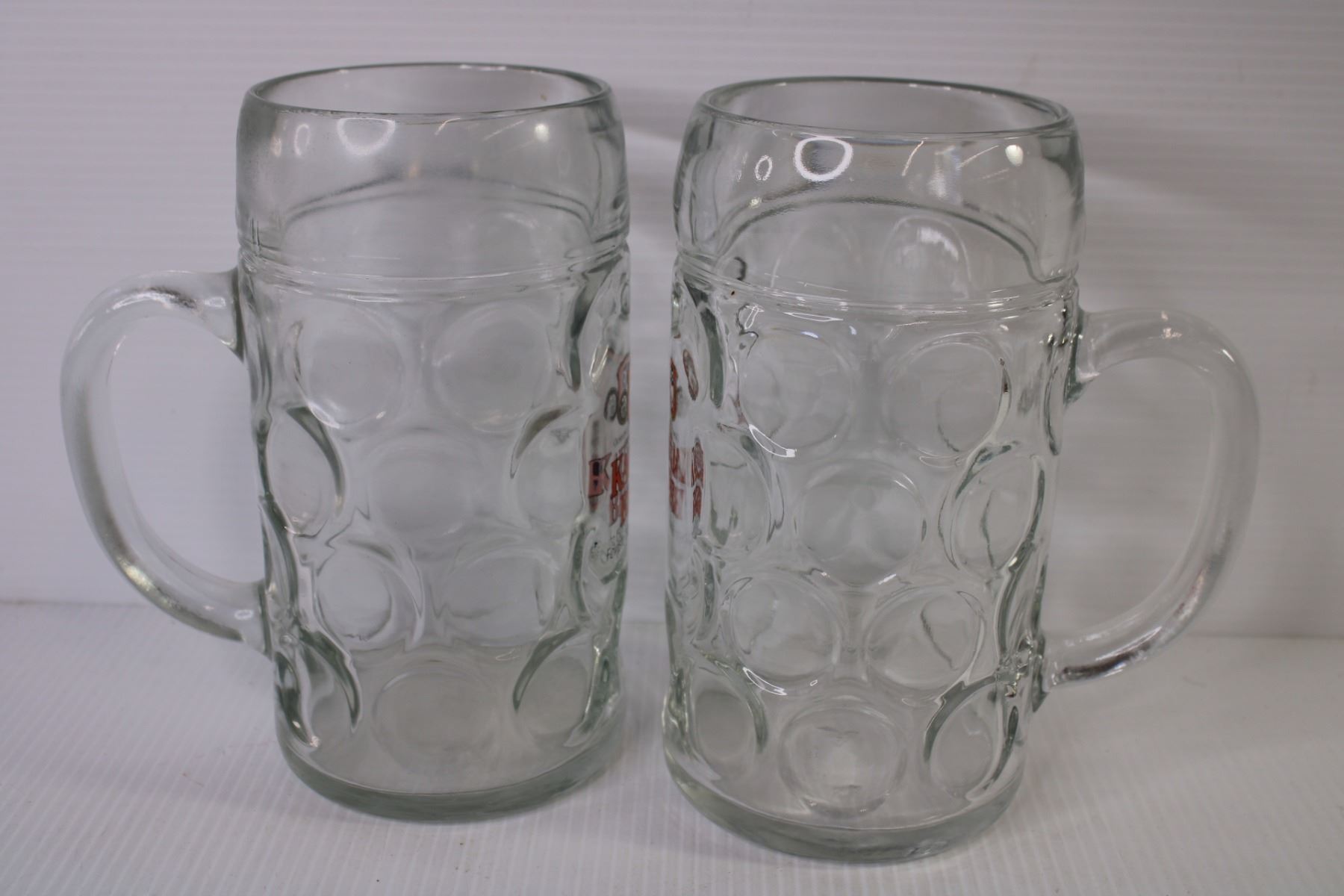 (2) One Litre Glass Beer Steins