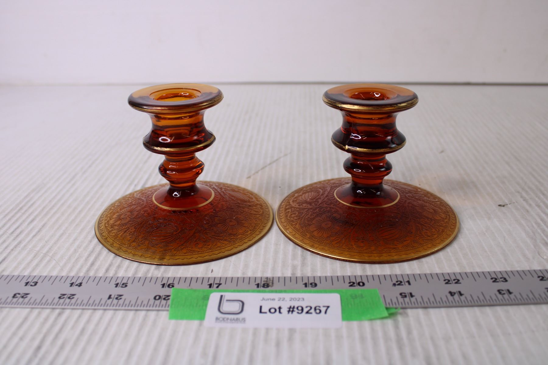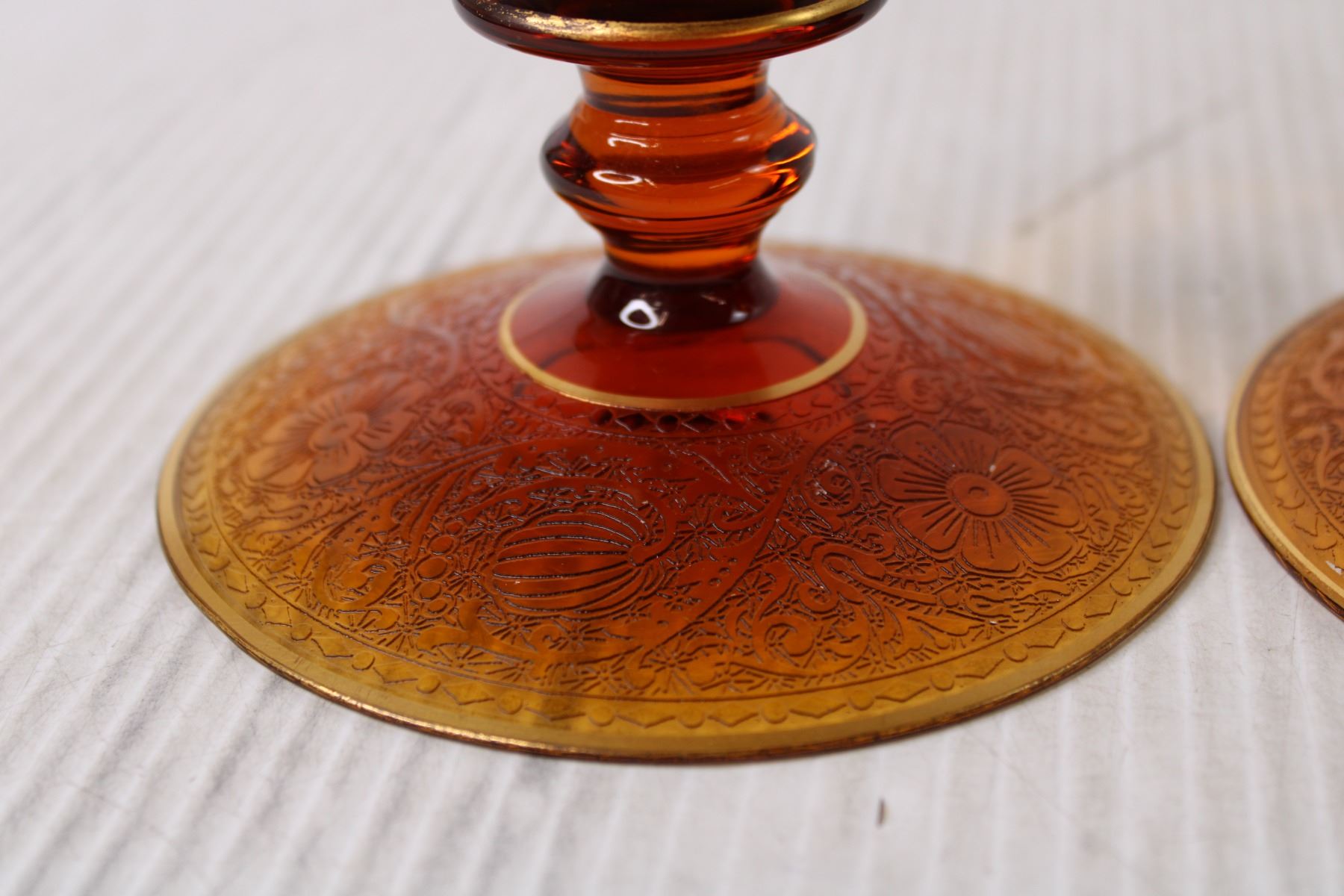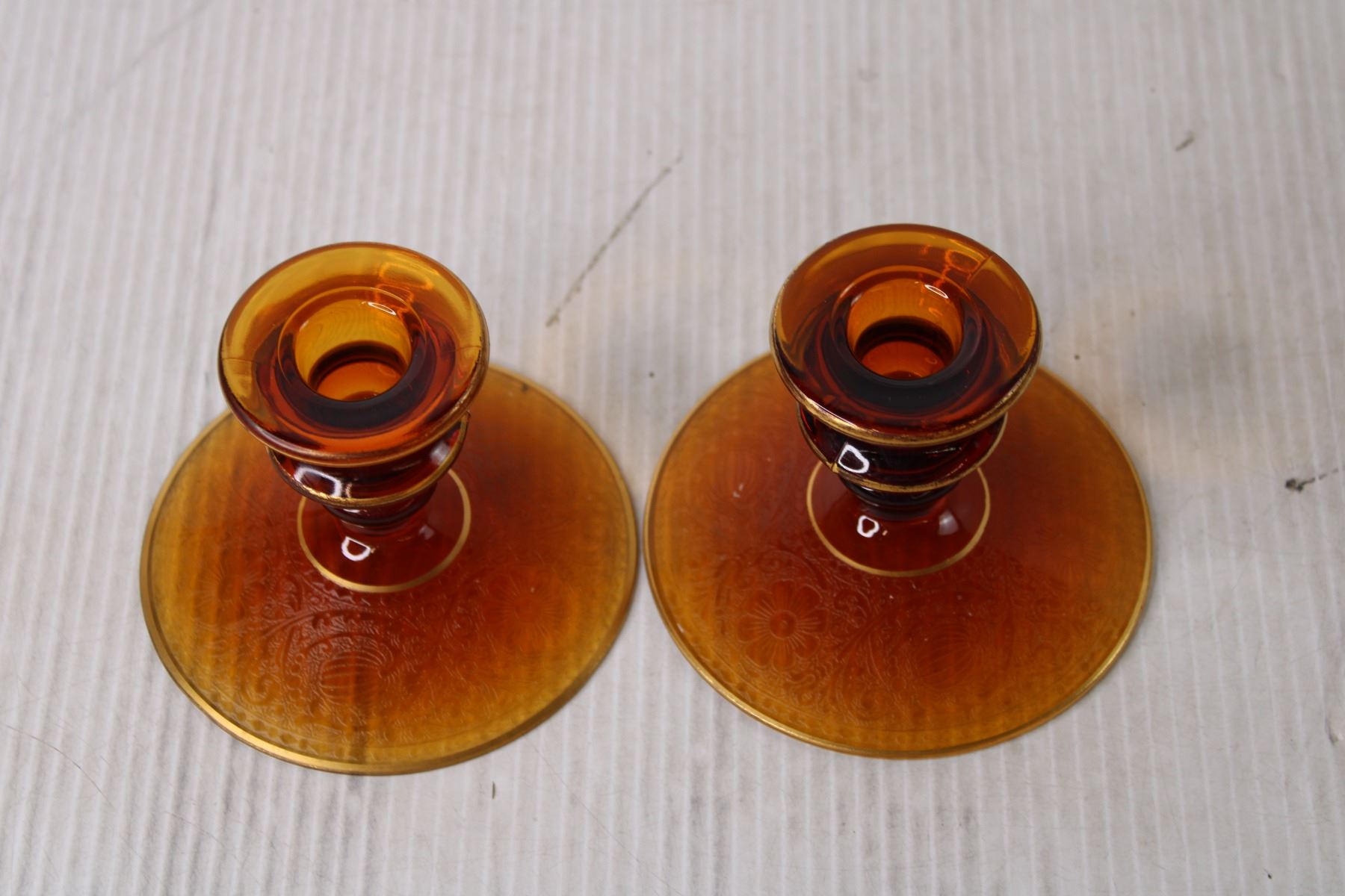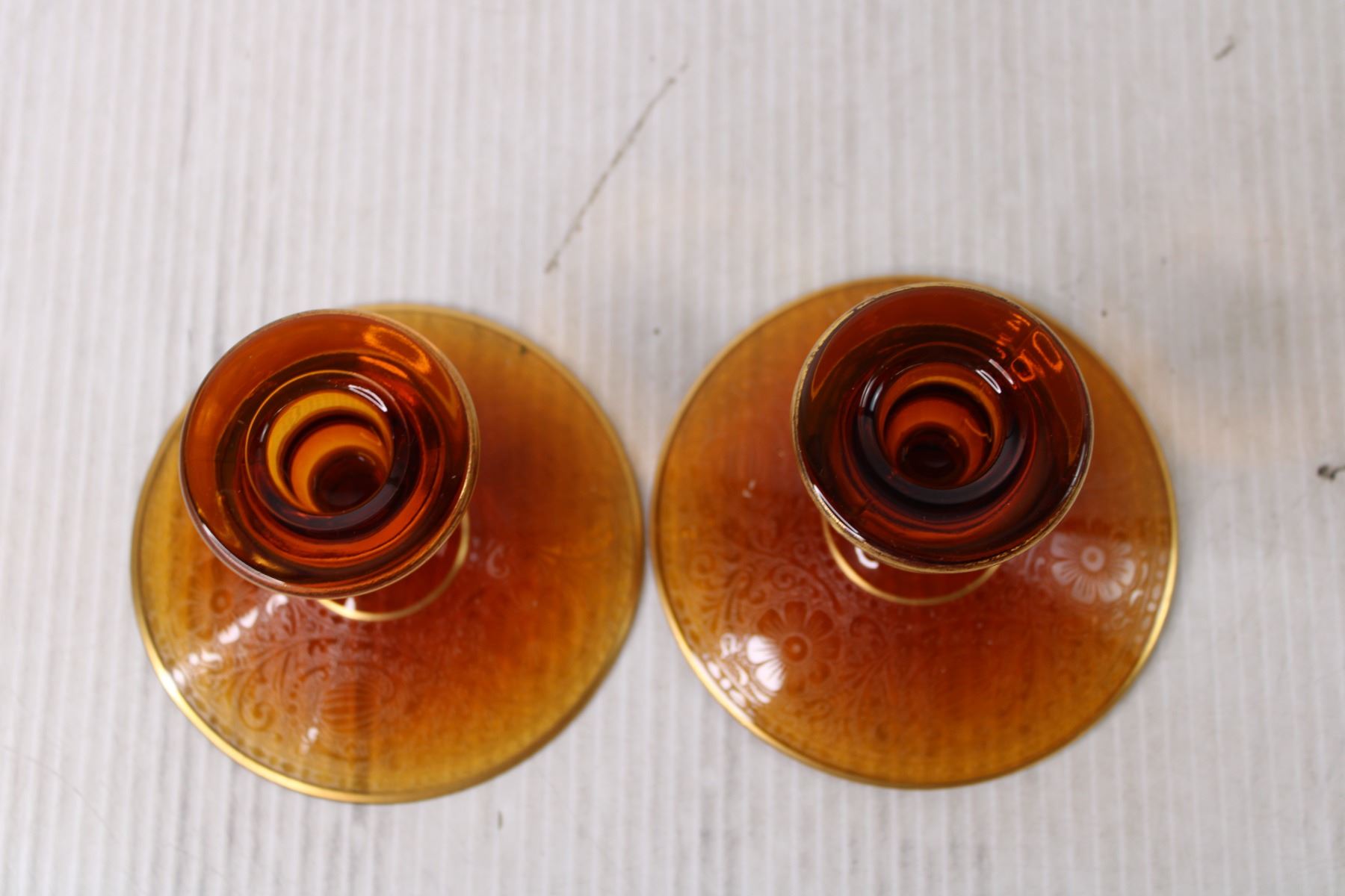 (2) Orange Etched Glass Candle Holders