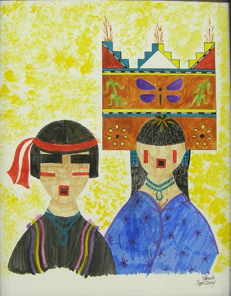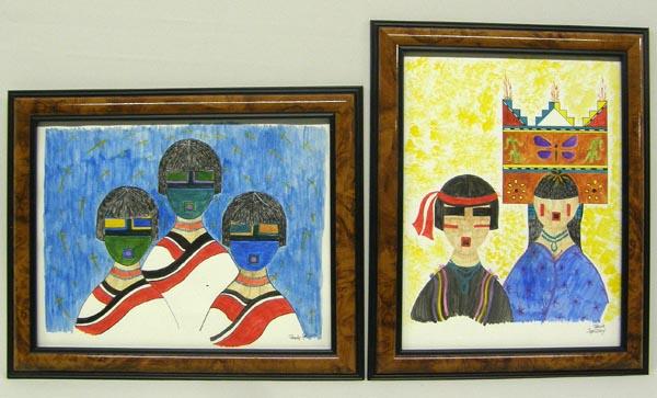 2 Original Framed Watercolors by Panda. Framed in a wood frame, under glass. Visual measures approx. 10.25'' x 8''. Buyers Pay Actual Shipping and Handling Charges(see terms and conditions for more information).