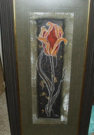 2 Original Hand Painted Paintings "Midnight Rose" & "Midnight Blue" sgned by Peters, Framed in wood frames that have beautiful grooves all the way and triple matted. The frames have a few surface scratches that need touching up but are in otherwise perfect condition, no cracks or damage.