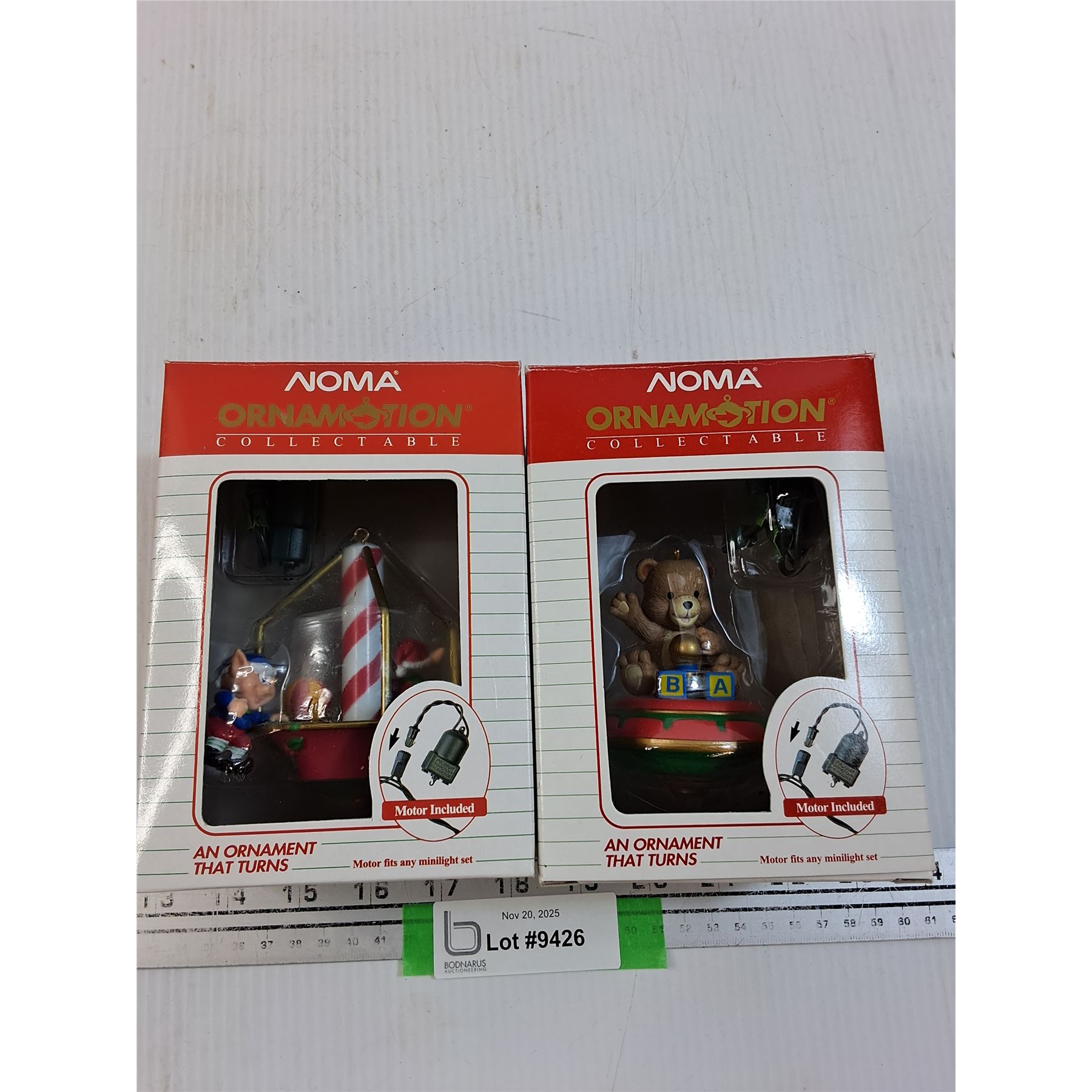 (2) Ornamotion - Christmas Tree Ornaments: Motorized Elf & Teddy Bear - working