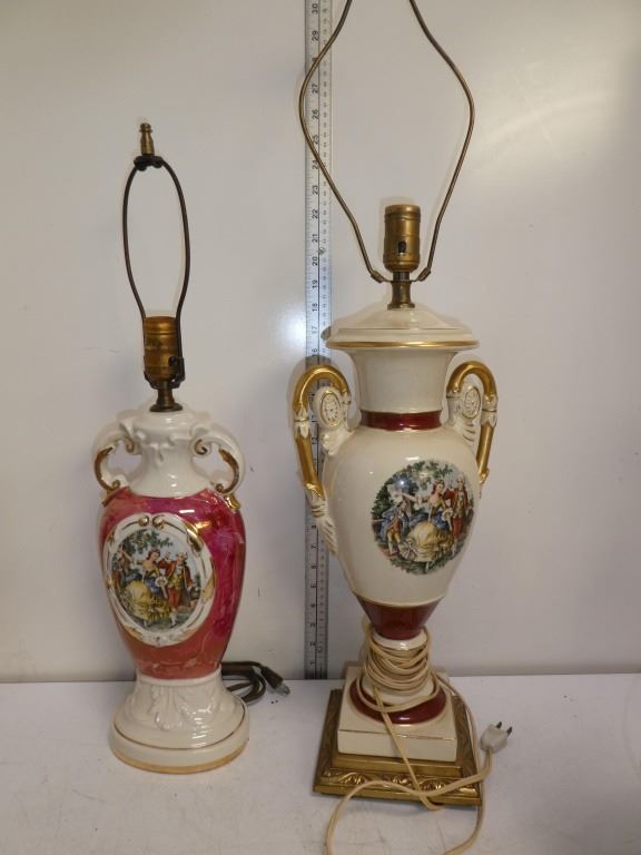 2 Ornate Ceramic Table Top Lamps