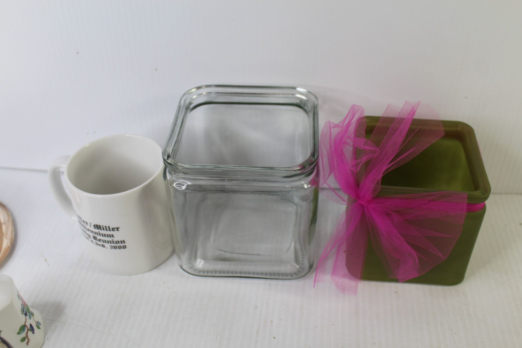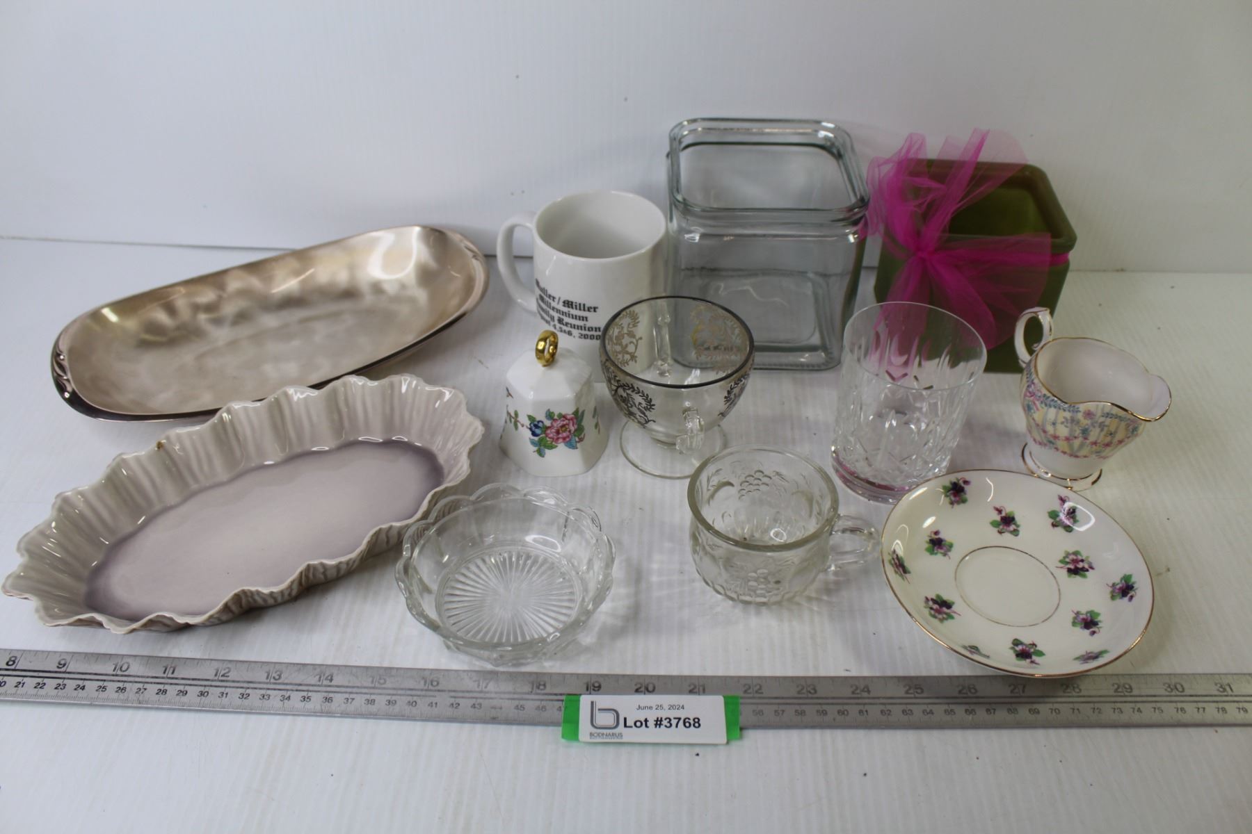 (2) Oval Dishes - (2) Square Glass Jars - Misc. - Items