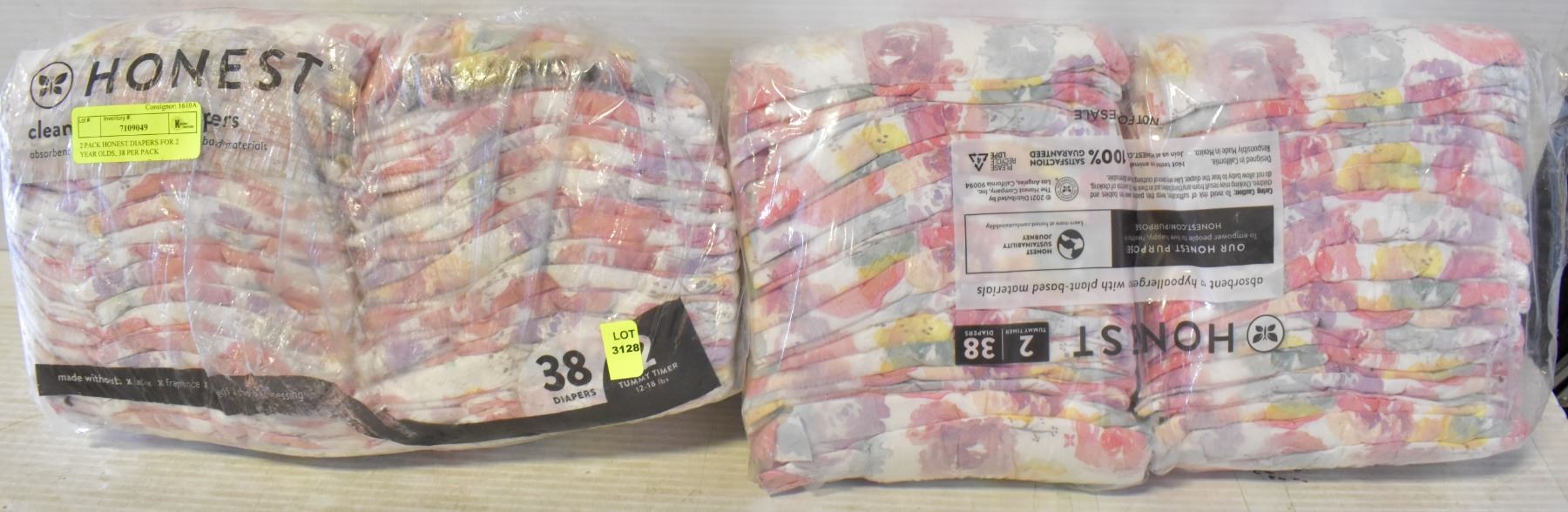 2 PACK HONEST DIAPERS FOR 2 YEAR OLDS, 38 PER PACK