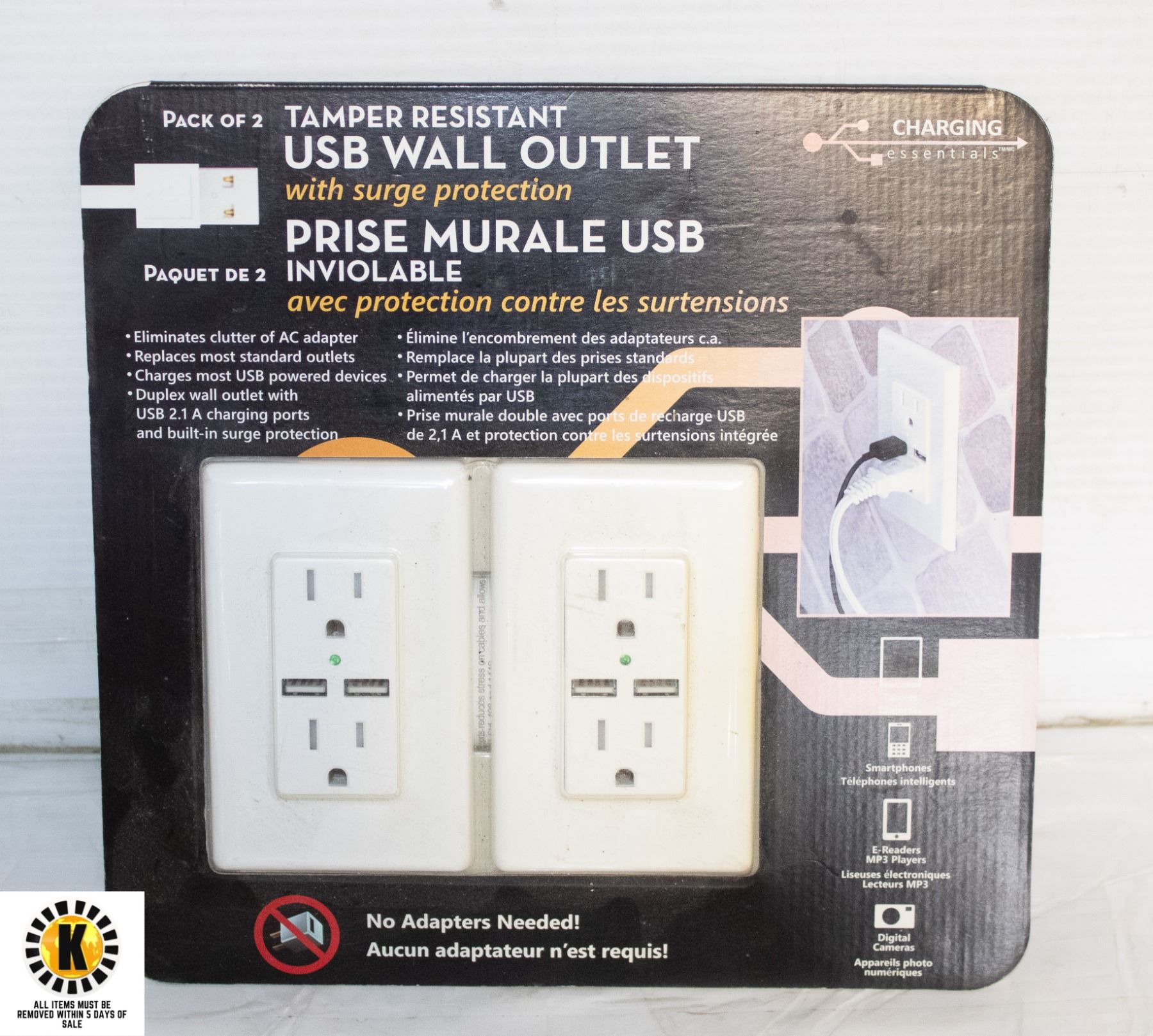 2 PACK OF TAMPER PROOF USB WALL OUTLETS