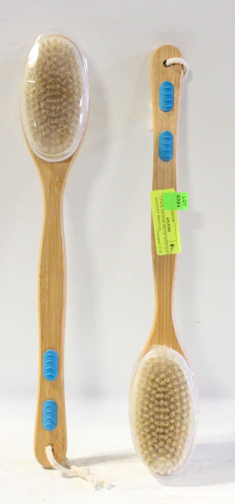 BATH DUAL SIDED LONG HANDLE BACK SCRUBBER BODY EXFOLIATOR FOR WET OR DRY BRUSHING NEW