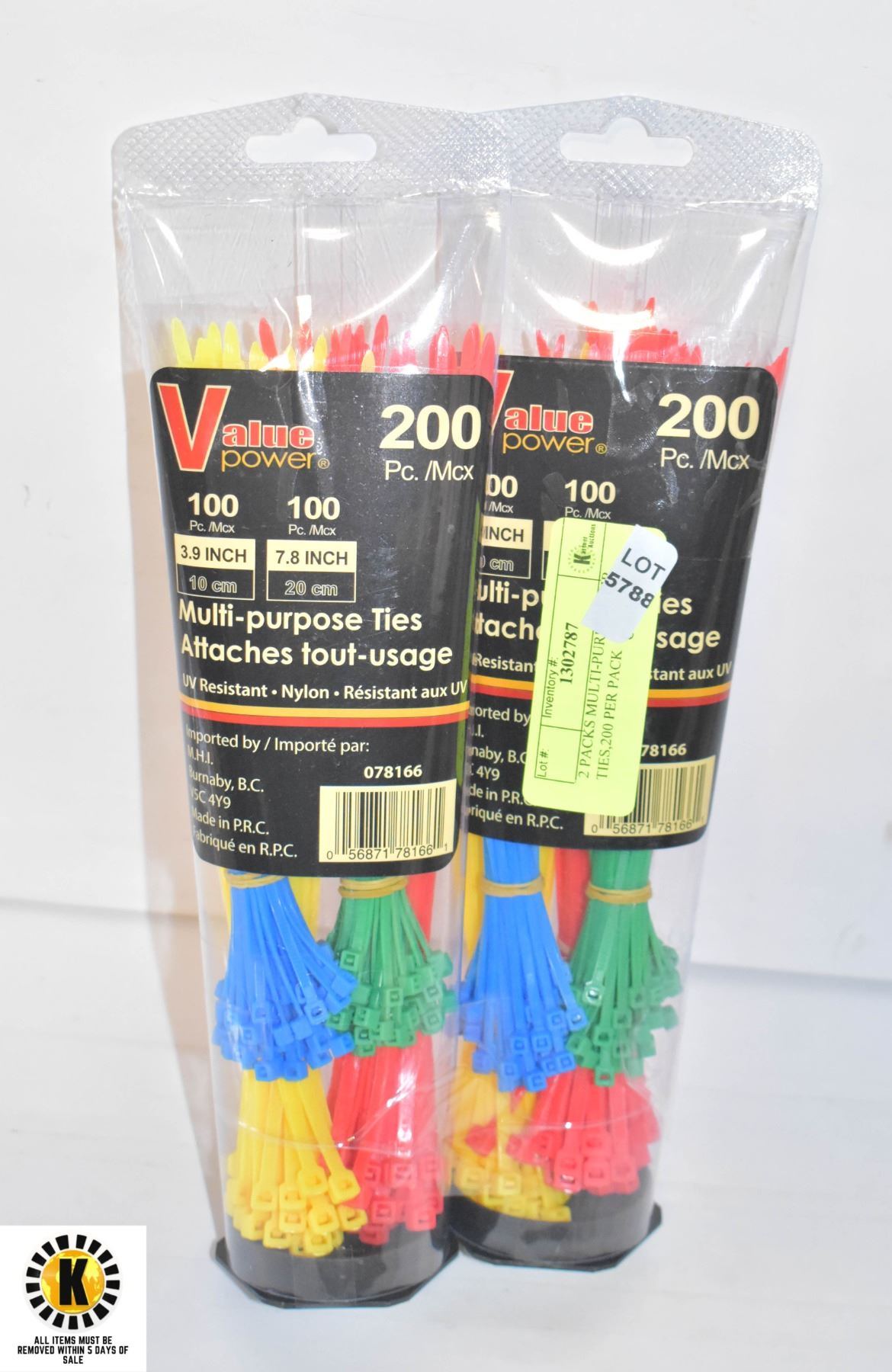 2 PACKS MULTI-PURPOSE ZIP TIES,200 PER PACK