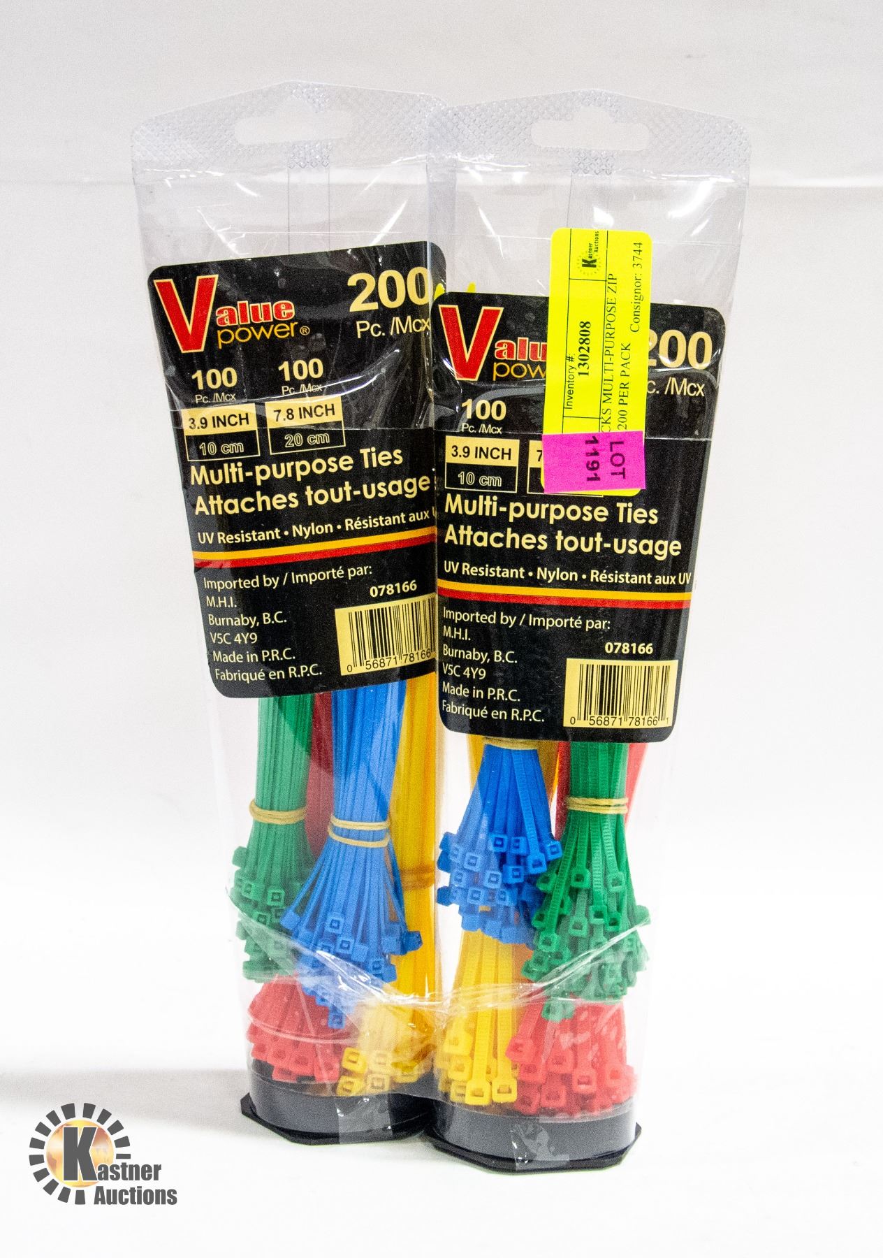2 PACKS MULTI-PURPOSE ZIP TIES,200 PER PACK