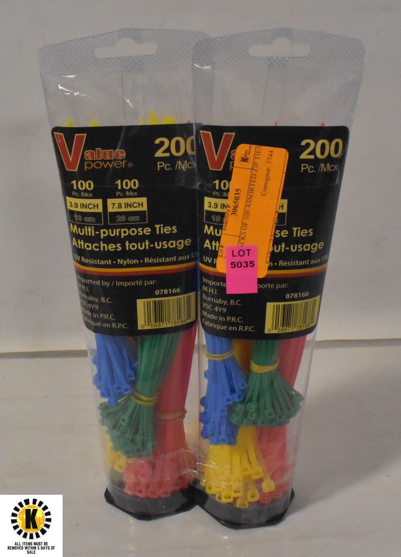 2 PACKS OF 100 ASSORTED ZIP TIES