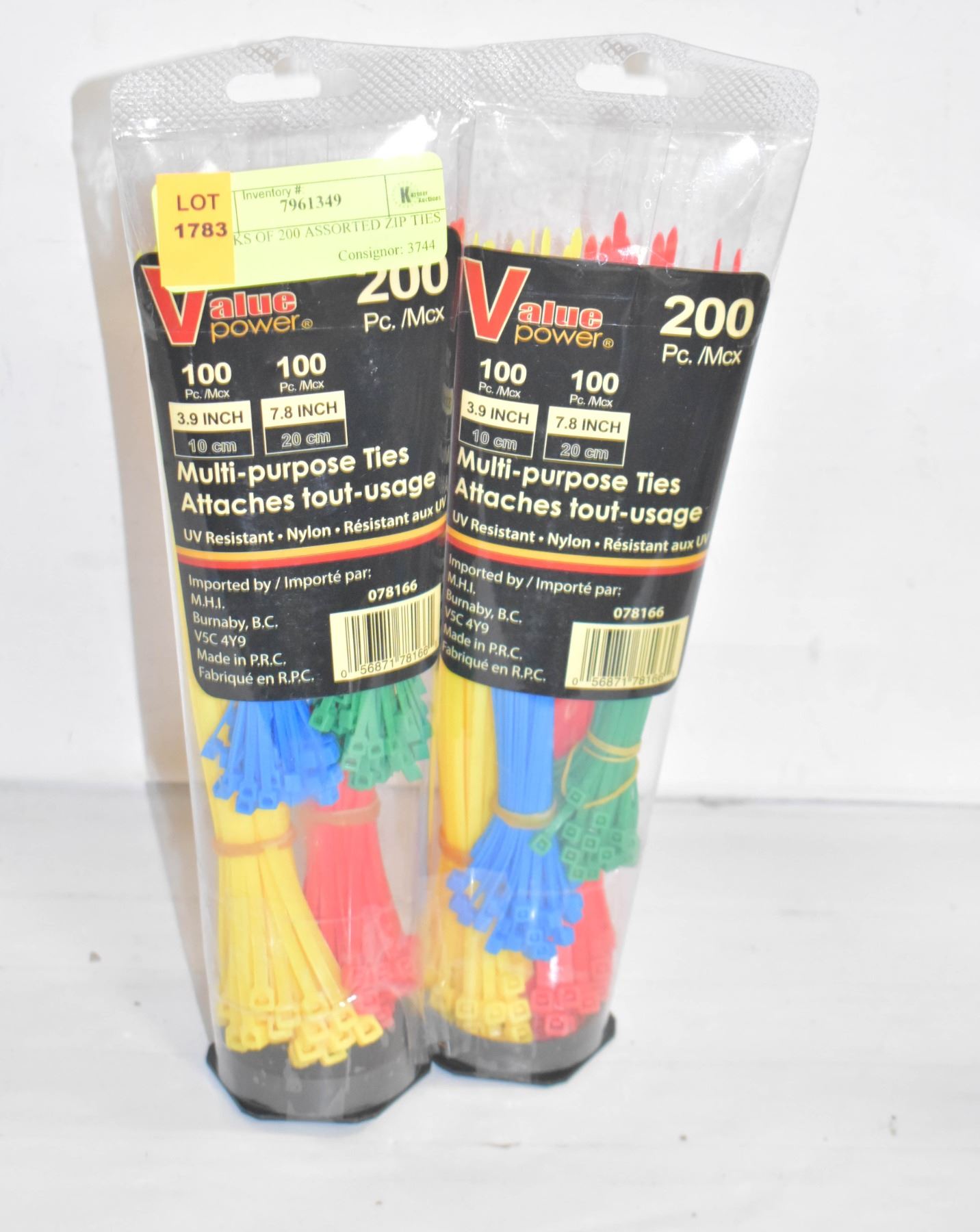2 PACKS OF 200 ASSORTED ZIP TIES