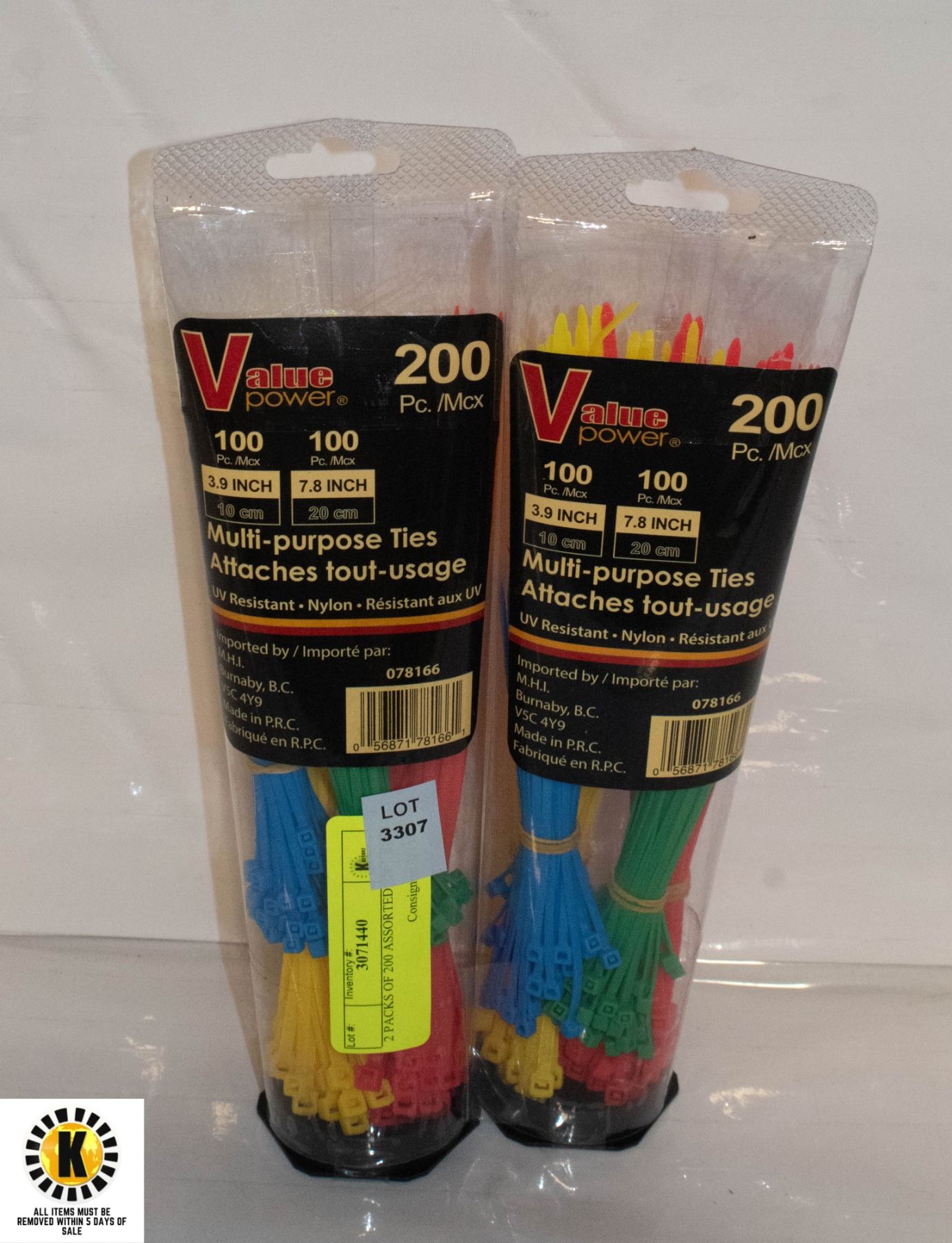 2 PACKS OF 200 ASSORTED ZIP TIES