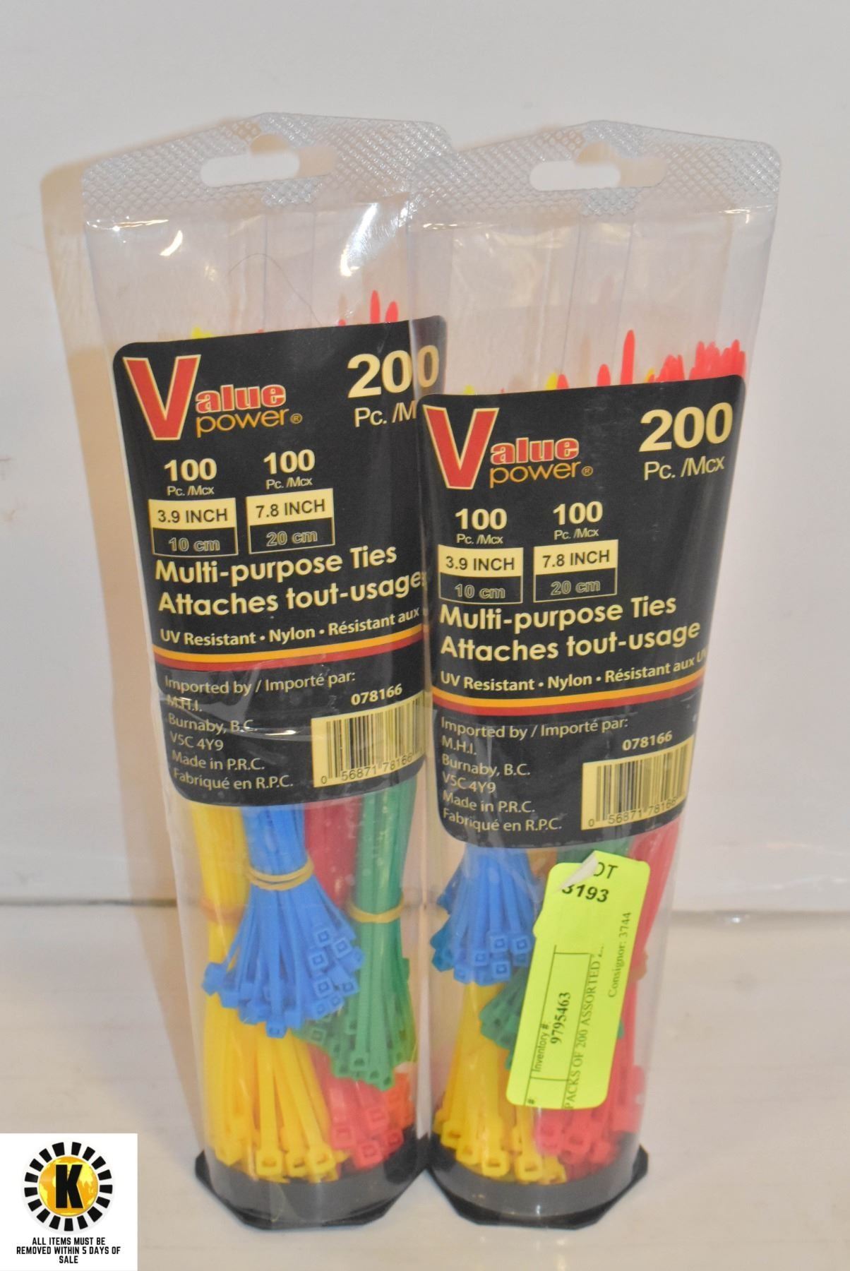 2 PACKS OF 200 ASSORTED ZIP TIES