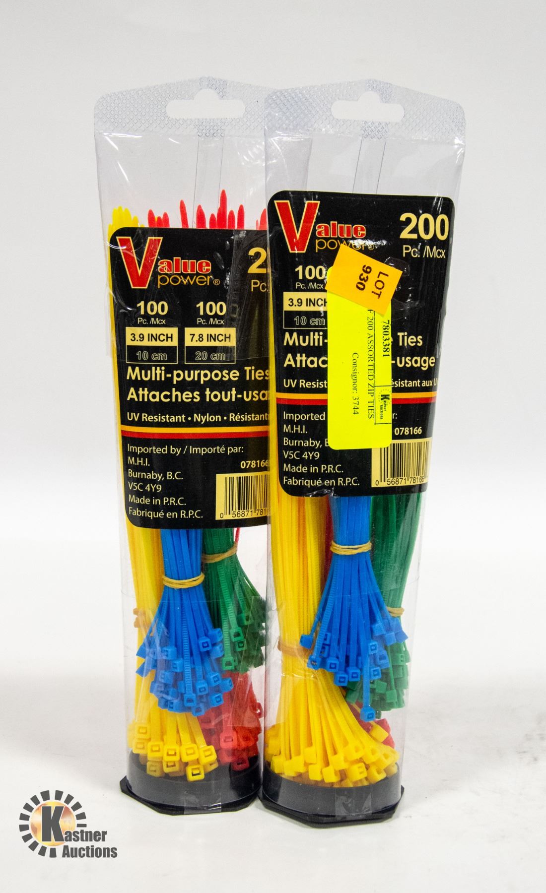 2 PACKS OF 200 ASSORTED ZIP TIES
