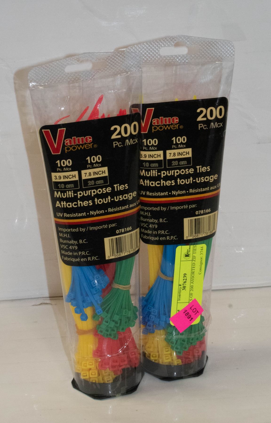 2 PACKS OF 200 ASSORTED ZIP TIES