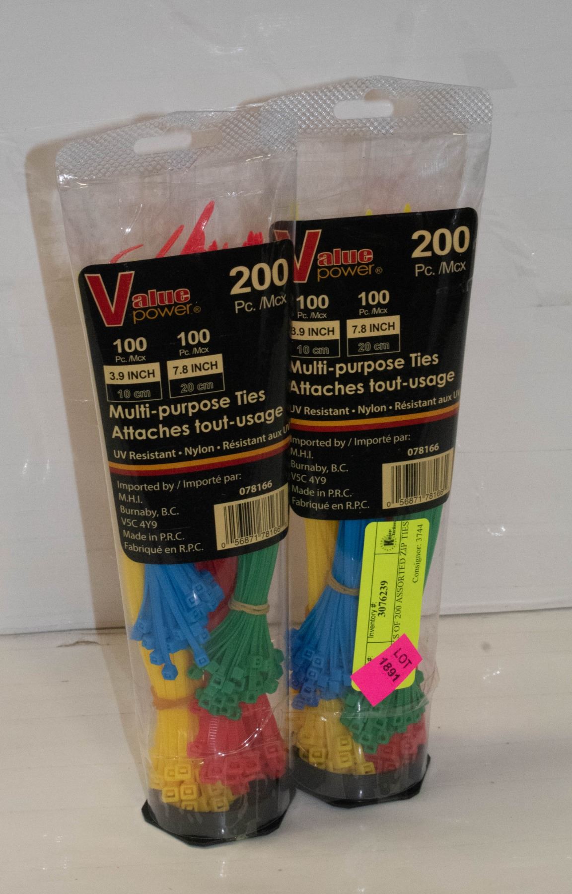 2 PACKS OF 200 ASSORTED ZIP TIES