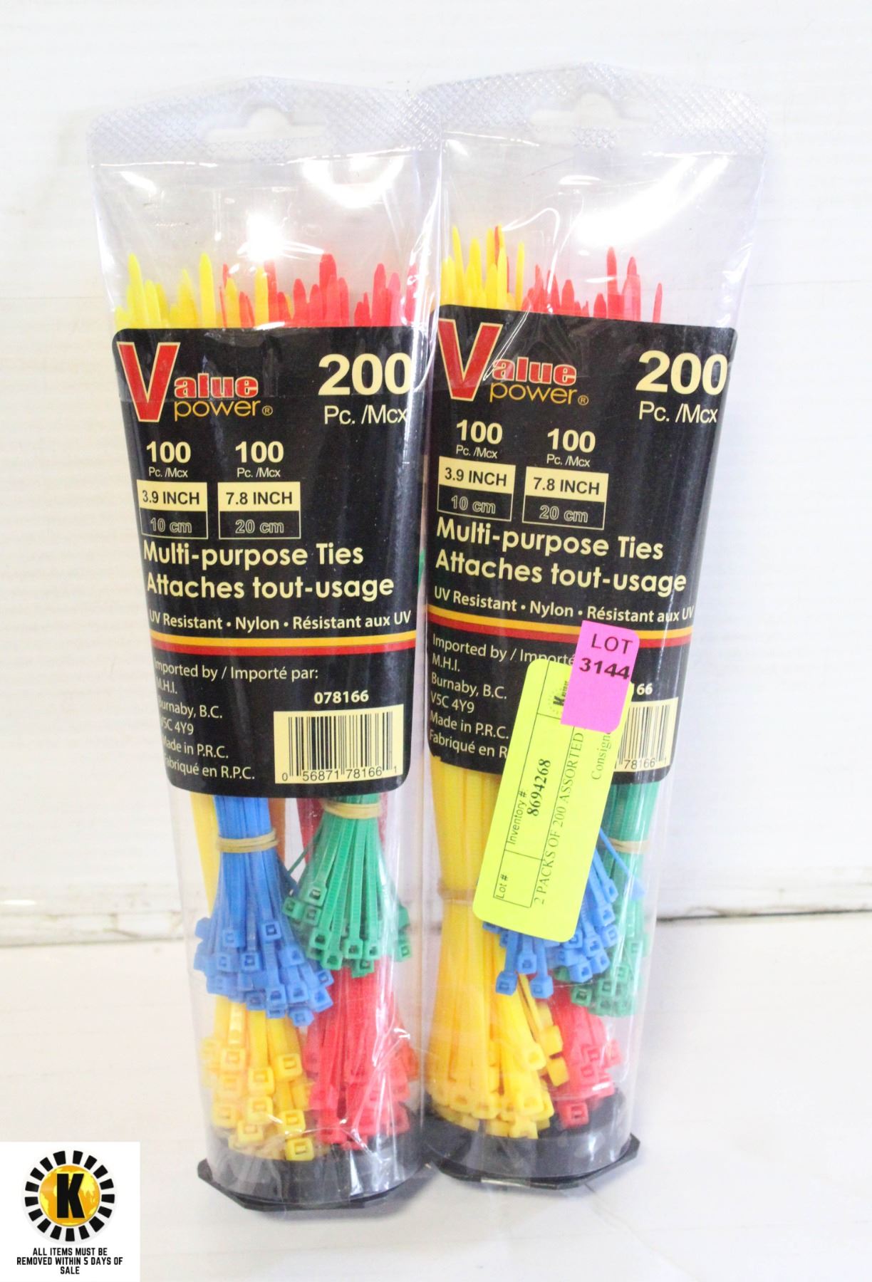2 PACKS OF 200 ASSORTED ZIP TIES