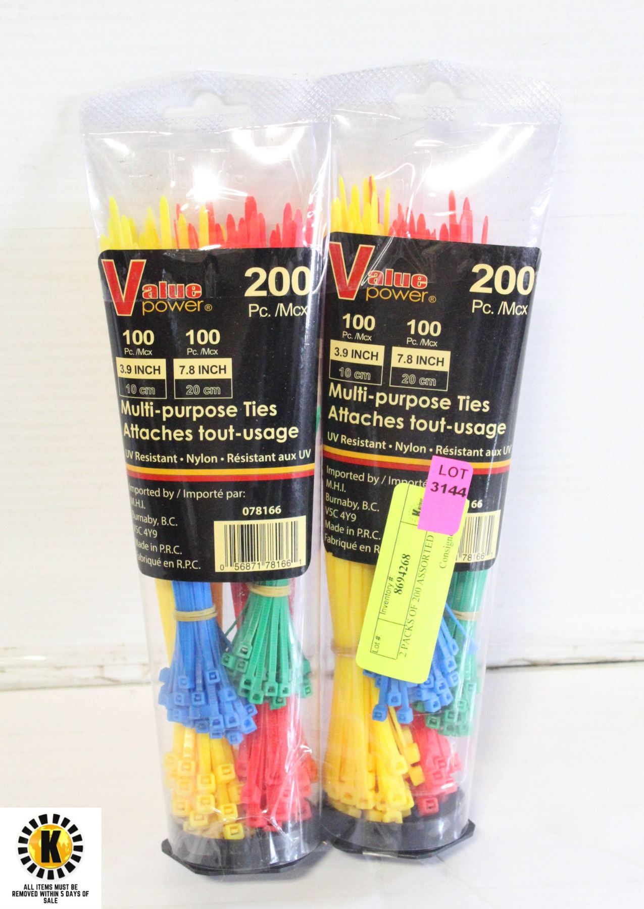 2 PACKS OF 200 ASSORTED ZIP TIES