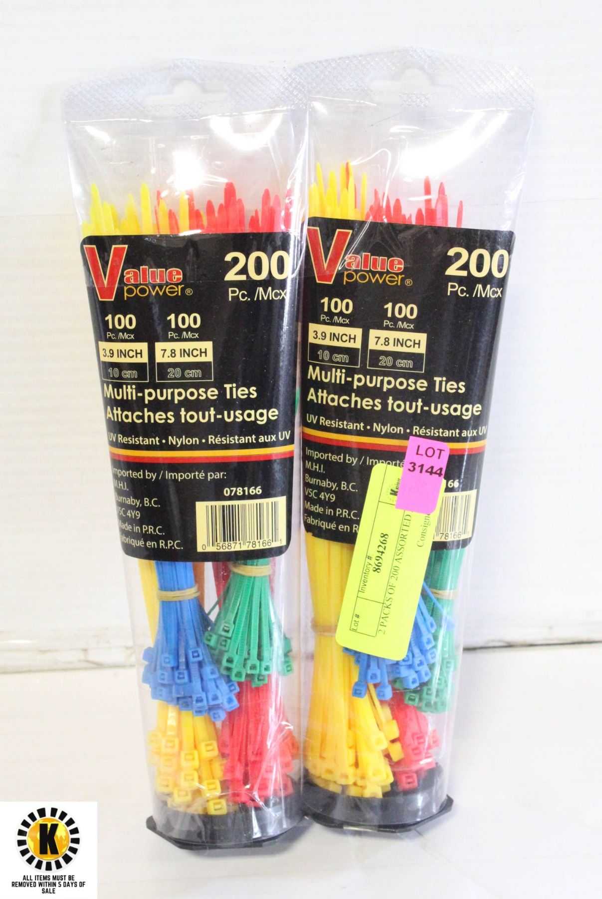 2 PACKS OF 200 ASSORTED ZIP TIES