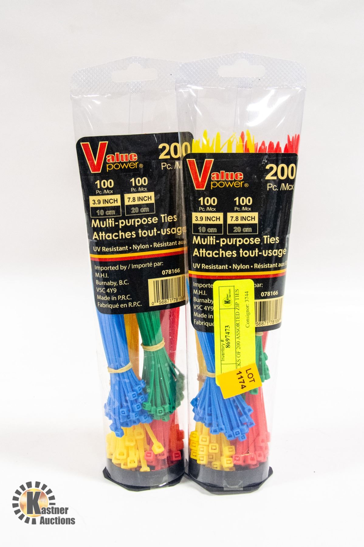 2 PACKS OF 200 ASSORTED ZIP TIES
