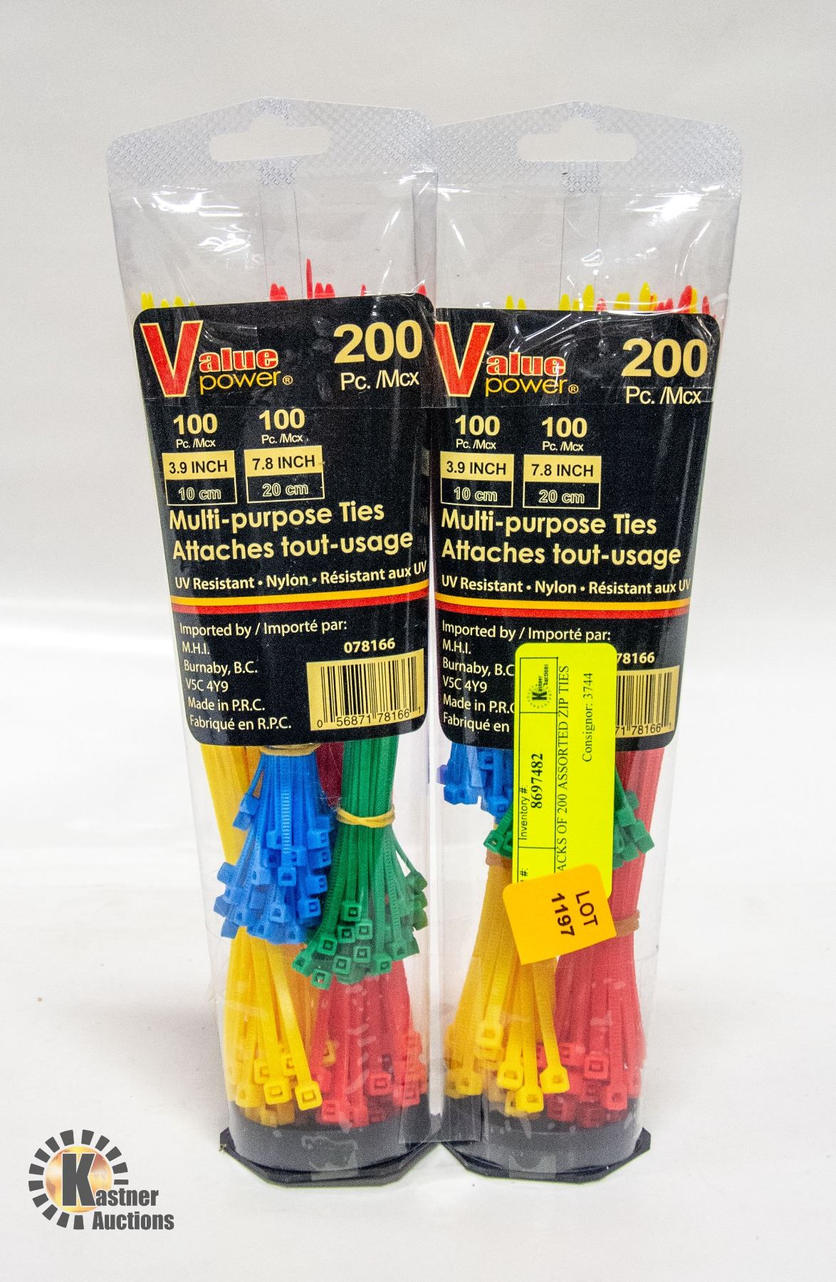 2 PACKS OF 200 ASSORTED ZIP TIES