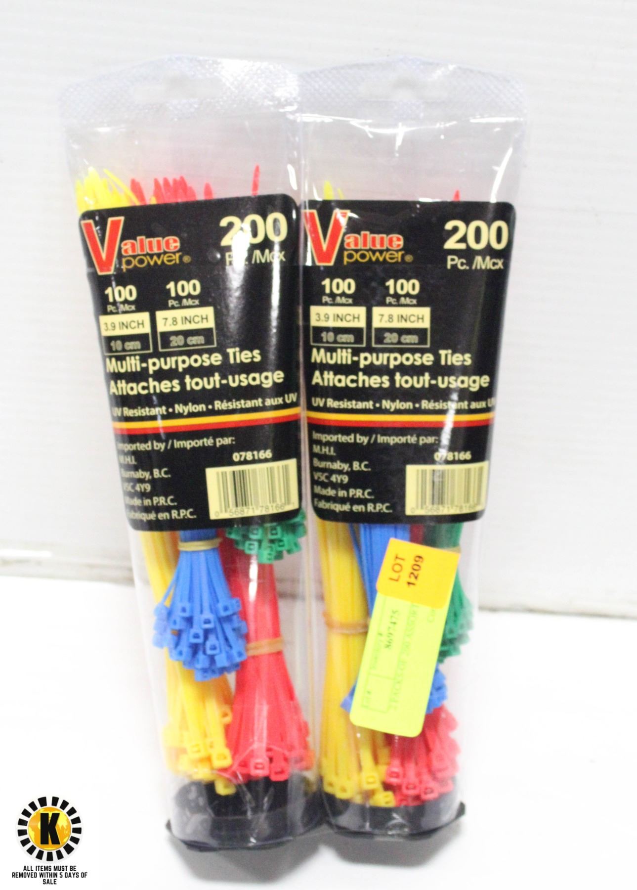 2 PACKS OF 200 ASSORTED ZIP TIES
