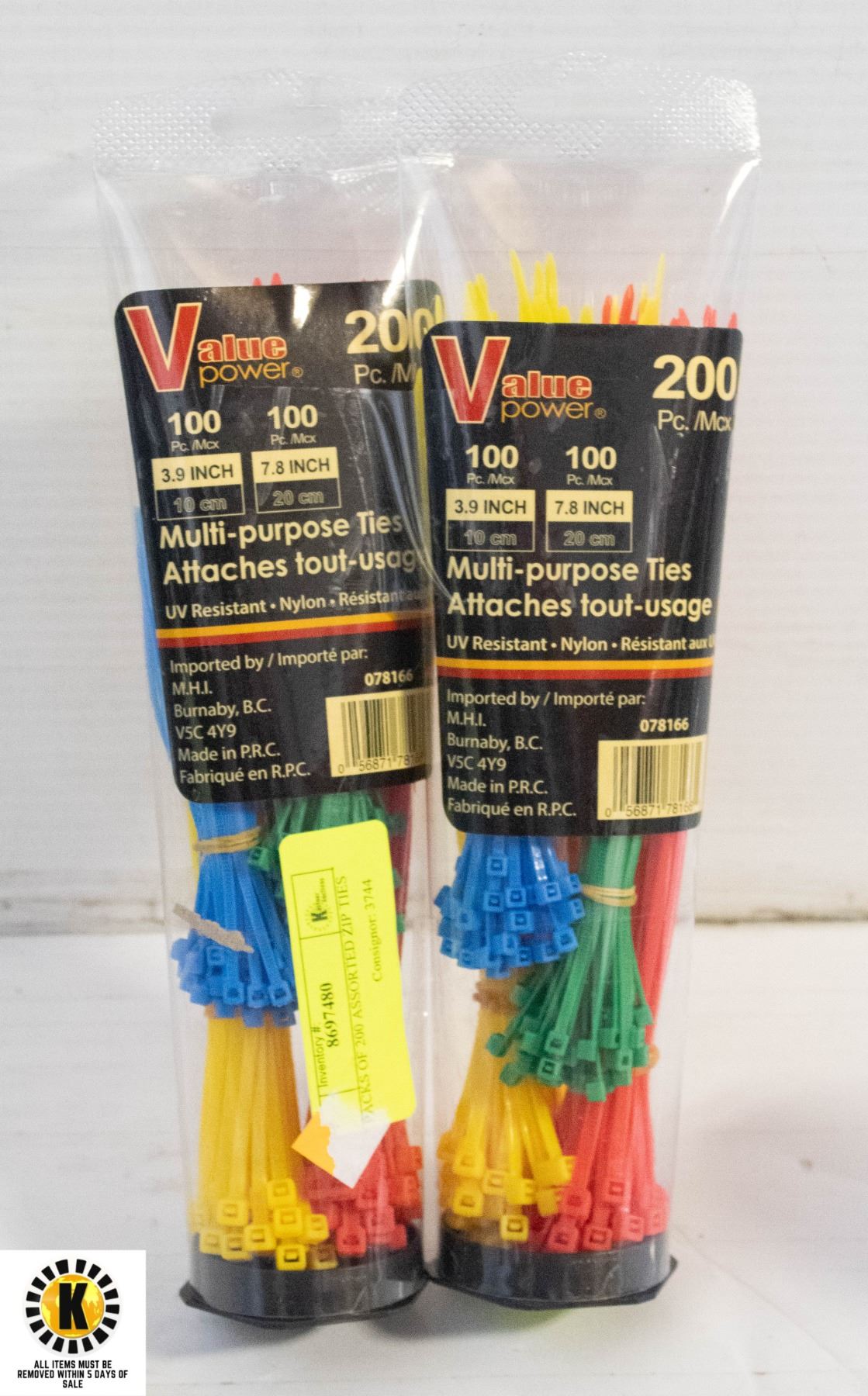 2 PACKS OF 200 ASSORTED ZIP TIES