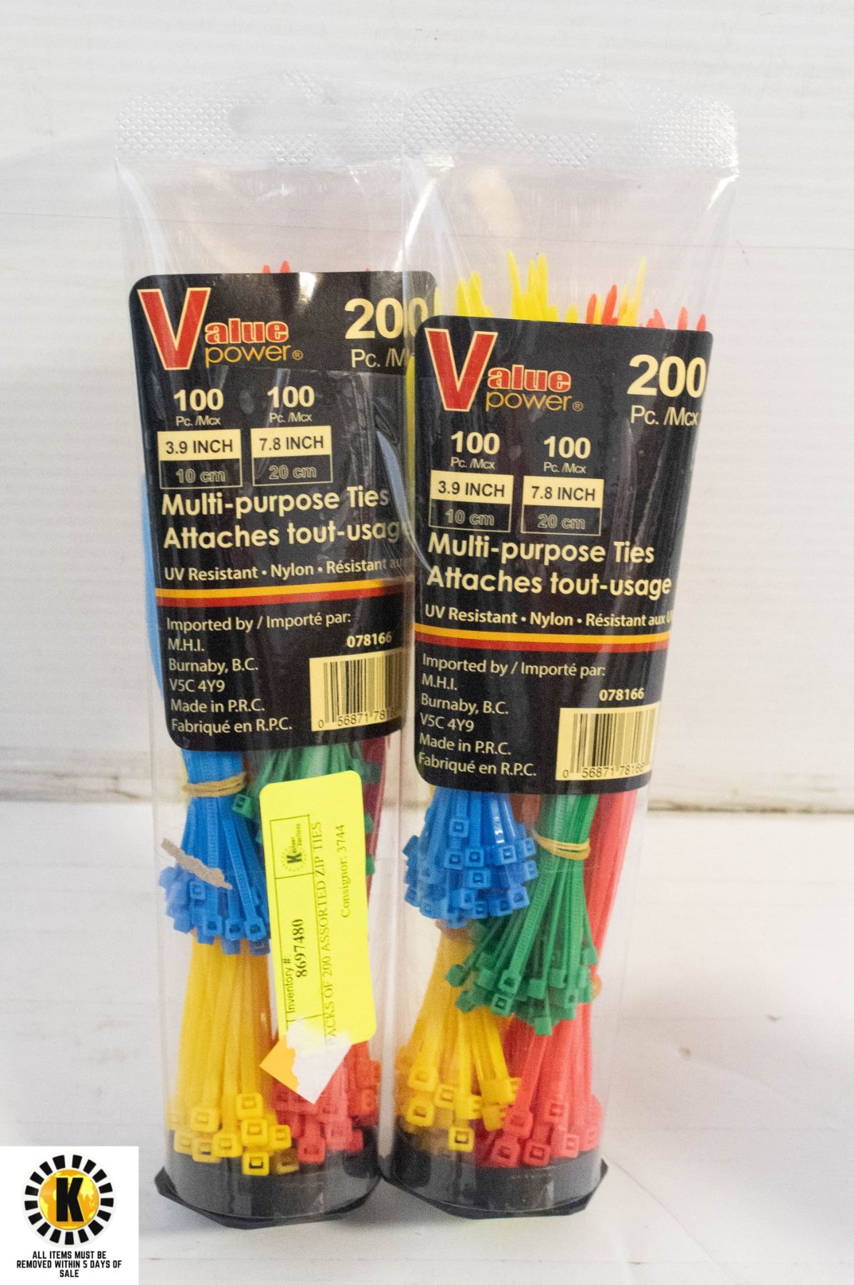 2 PACKS OF 200 ASSORTED ZIP TIES