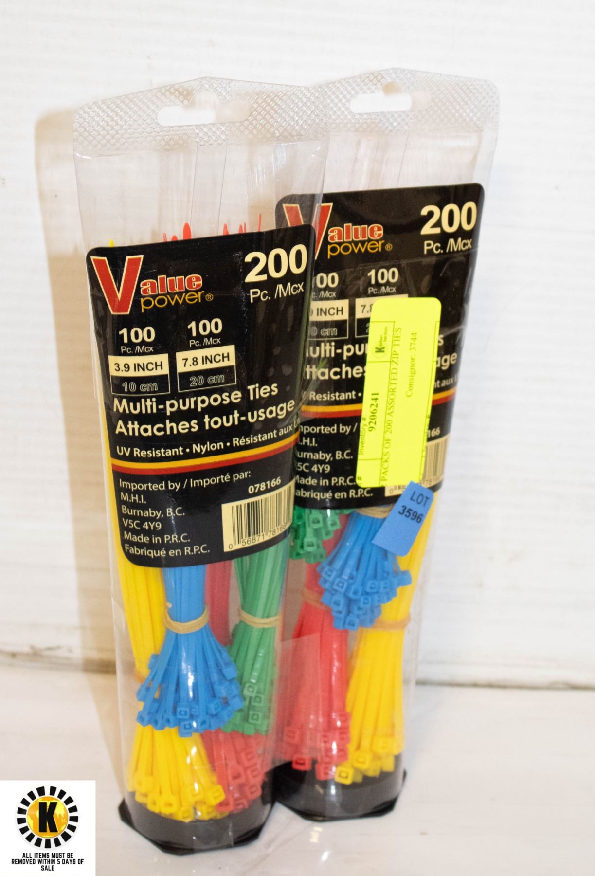 2 PACKS OF 200 ASSORTED ZIP TIES