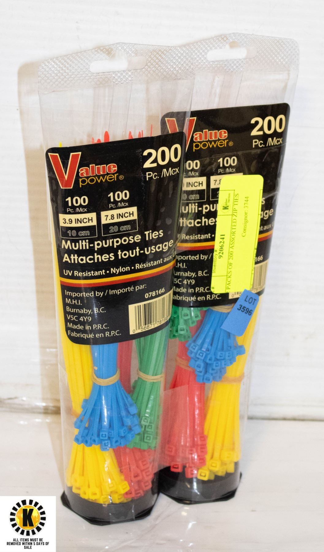 2 PACKS OF 200 ASSORTED ZIP TIES