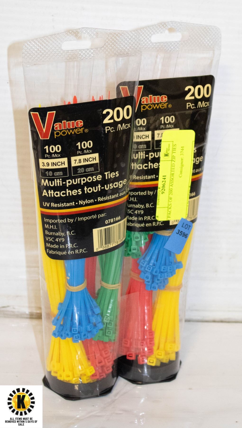2 PACKS OF 200 ASSORTED ZIP TIES