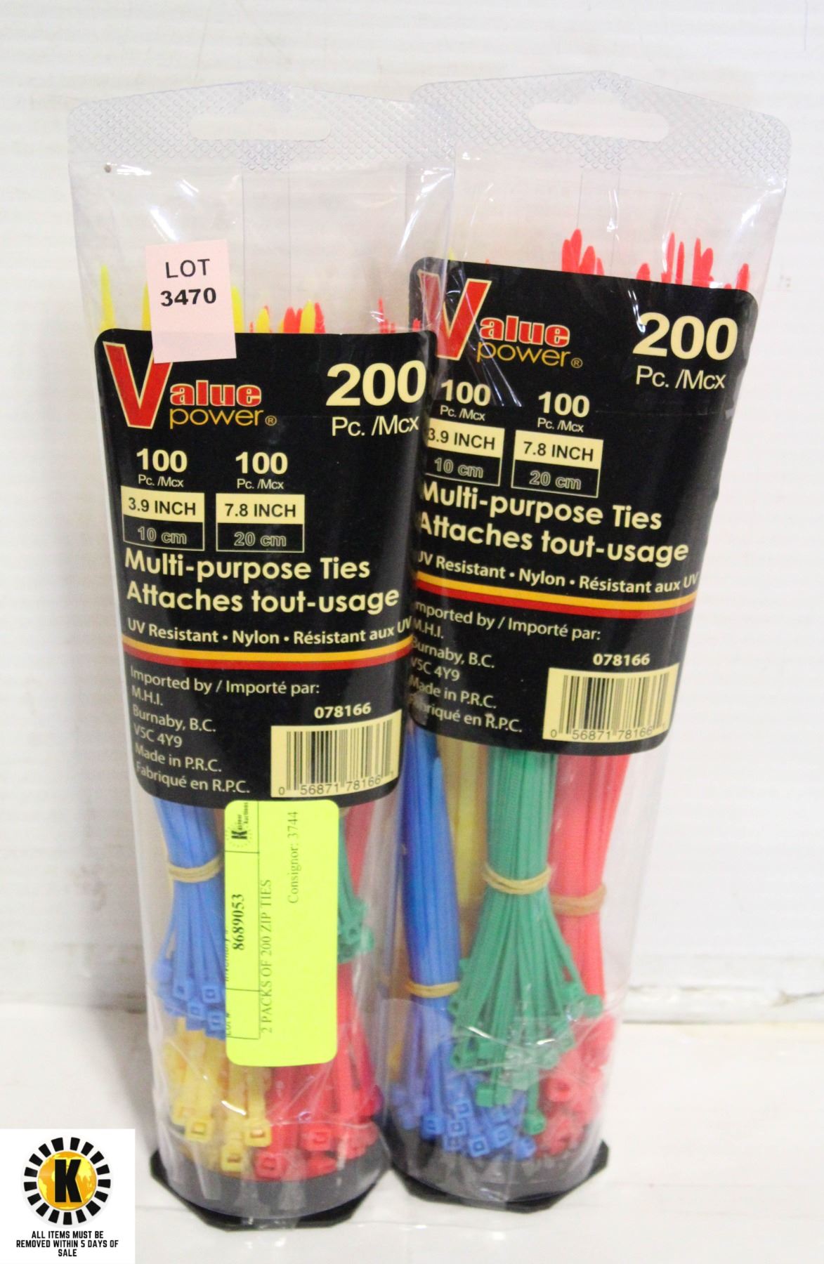 2 PACKS OF 200 ZIP TIES