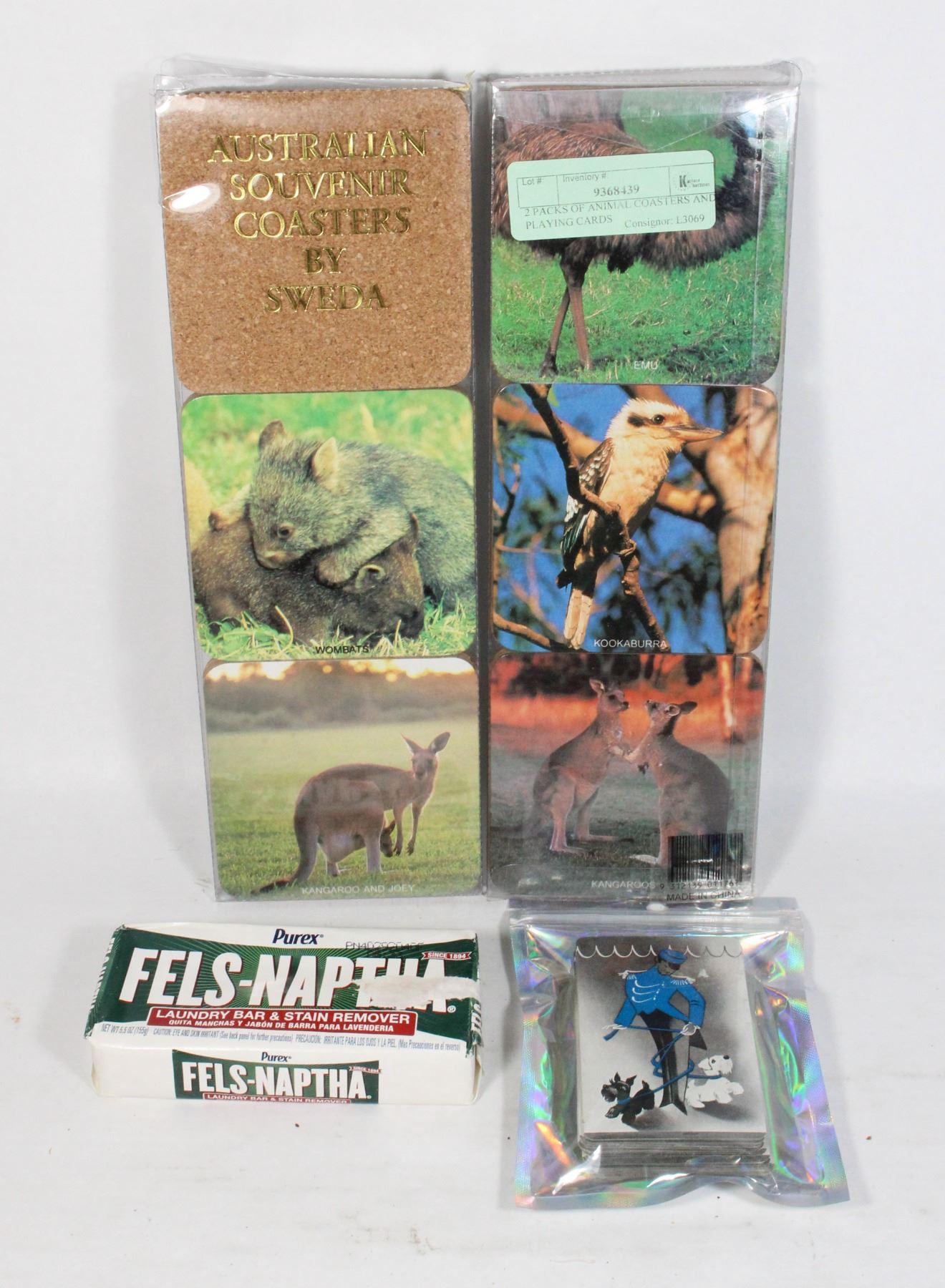 2 PACKS OF ANIMAL COASTERS AND PLAYING CARDS