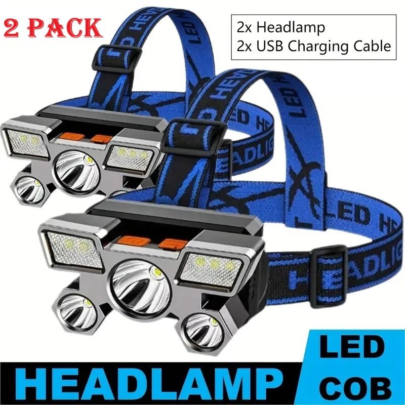 2 PACKS-RECHARGEABLE 5 LED HEADLAMP: 4 MODES,