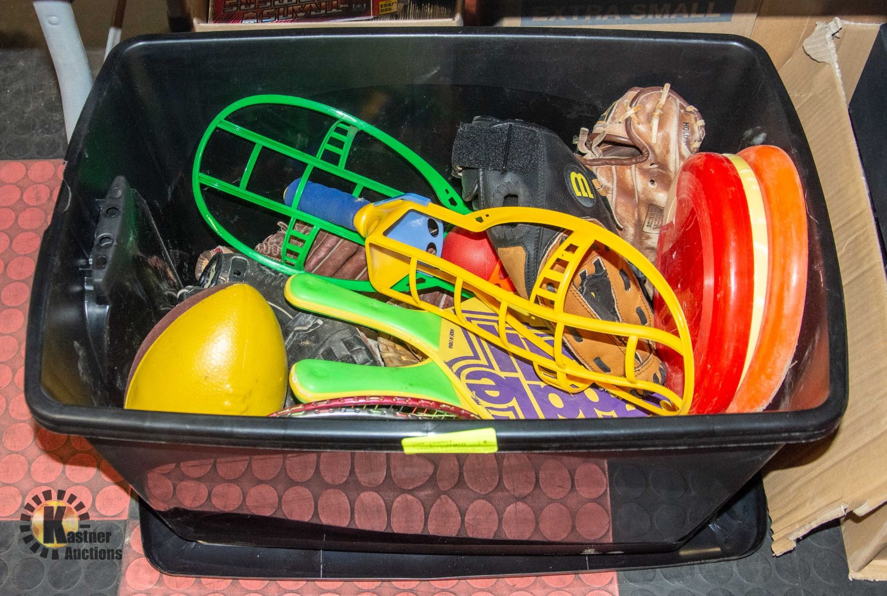 BALLS, 2 SHUTTLE SMASH ROCKETS, 6 RIGHT HAND BALL GLOVES & 1 LEFT HAND BALL GLOVE ALL IN TOTE     **ALL ITEMS MUST BE REMOVED BY 5PM SATURDAY, AUGUST 31ST 2024. ALL REMAINING ITEMS WILL BE SUBJECT TO A $6.00 PER DAY STORAGE CHARGE. ANY ITEMS REMAINING AFTER MONDAY, SEPTEMBER 23RD 2024 WILL BE CONSIDERED FORFEITED. NO REFUNDS WILL BE ISSUED FOR FORFEITED ITEMS. TO SCHEDULE A PICK UP APPOINTMENT CLICK HERE