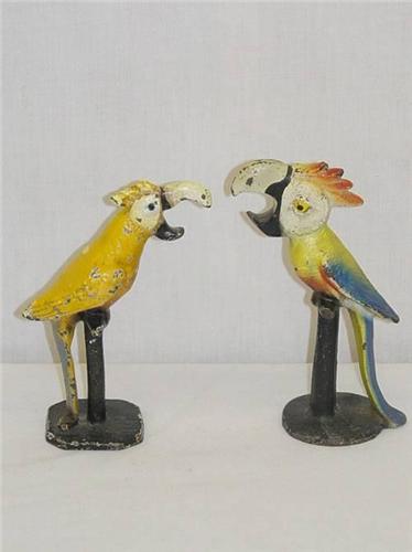 2 PAINTED CAST IRON PARROT FORM BOTTLE OPENERS - PAINT LOSS and WEAR;